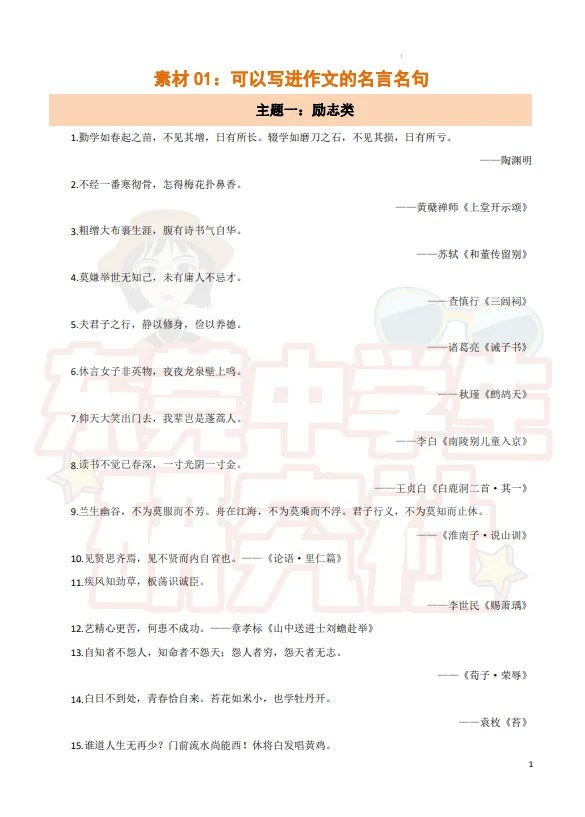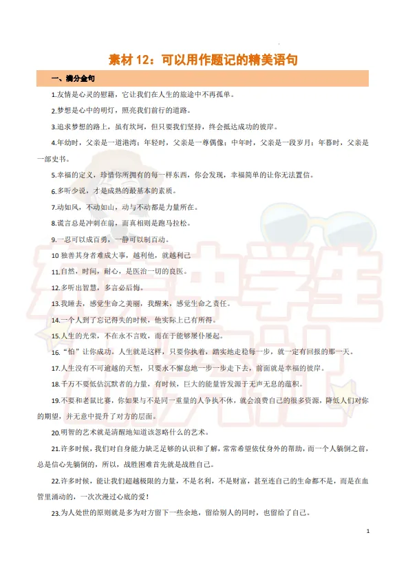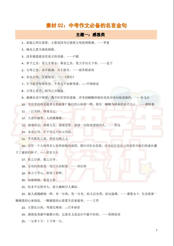 ▶【中考】中考作文 好句素材包