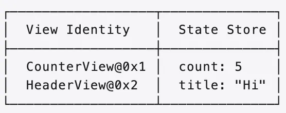 @State 的数据根本不存储在 View struct 里。SwiftUI 在框架内部维护了一张表: