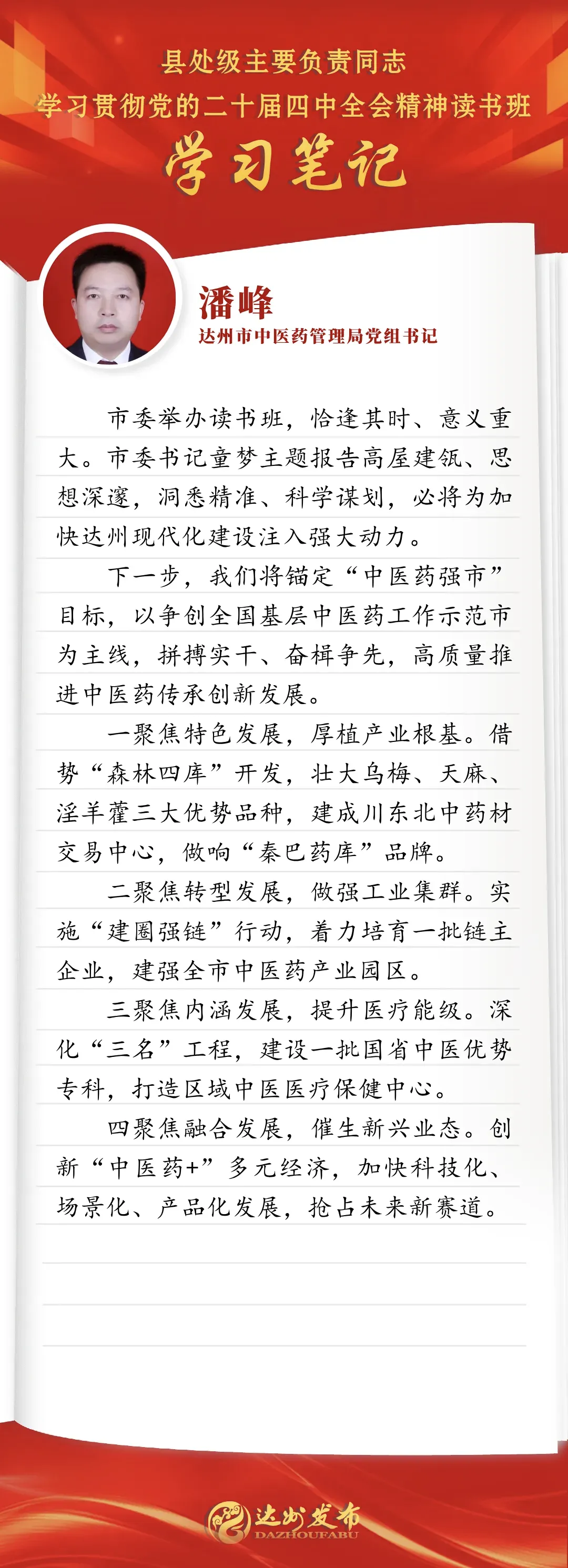 读书班学习笔记 | 达州市中医药管理局党组书记潘峰:拼搏实干、奋楫争先,高质量推进中医药传承创新发展