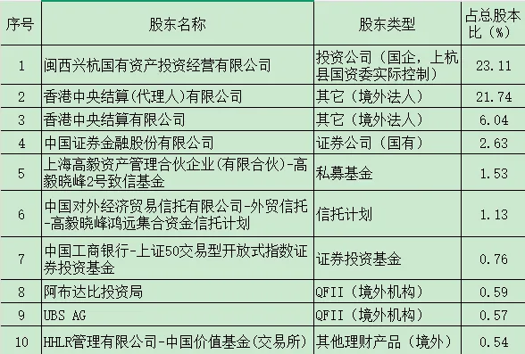 公司本质为国有控股企业,控股股东福建紫金矿业集团有限公司(福建省国资委控制)通过间接持股实现战略主导,前十大股东合计持股占比约58.4%。