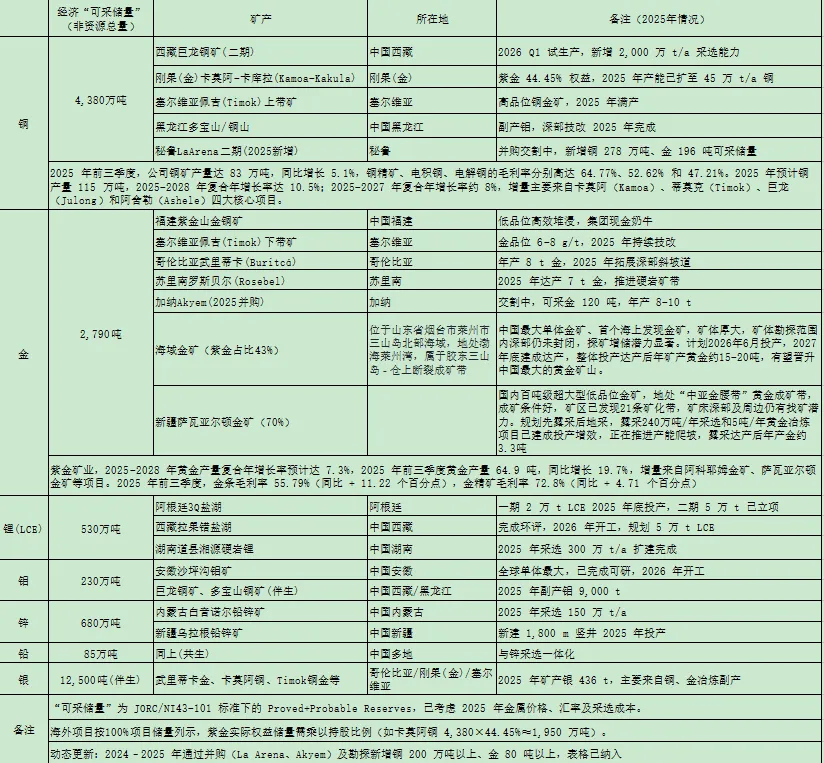紫金是 “金铜双轮 + 低成本 + 逆周期并购 + 项目驱动成长”。它同时踩中矿业股所有加分项: 铜 + 金双品种,总有一个在涨(方向),产量 10 年扩 10 倍(弹性,成长拉满), 全球低成本矿山,安全垫最厚(成本)。