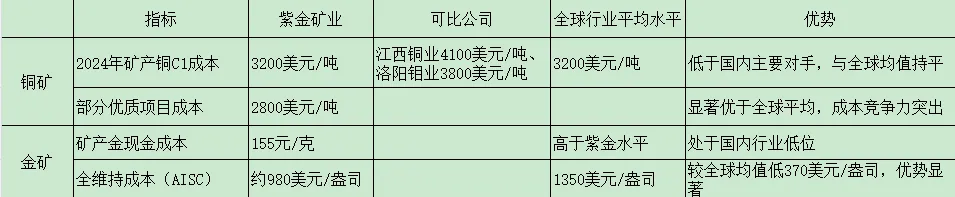 技术创新是紫金矿业成本优势的核心来源,有“变废为宝”(开发低品位矿等闲置资源)的神力加持。单位产品成本显著低于行业均值与竞争对手。
