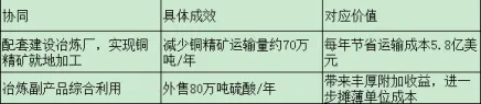 矿业的成本控制不单靠技术,上下游协同,成本的系统性优化也是重要因素。上下游协同的核心价值体现在双向赋能:上游矿山资源为下游冶炼加工板块提供稳定、低成本的原料供应,下游冶炼加工提升产品附加值,摊薄上游单位固定成本。公司全产业链协同降本案例(卡莫阿铜矿冶炼厂)