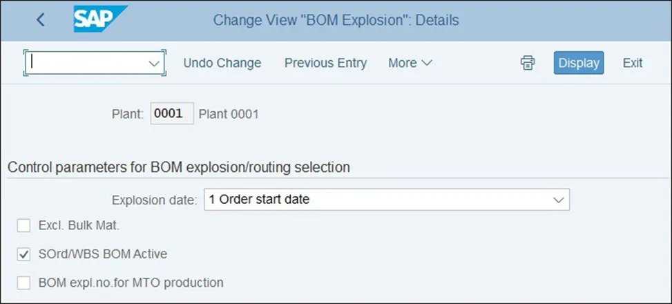 最后,关于 MTO 生产的 BOM 展开编号复选框,当想要为链接到销售订单特殊库存的从属收货要素复制 BOM 展开号时,应选中该设置。此设置对于项目/WBS 特殊库存下的 MTP 生产和收货要素也有效。