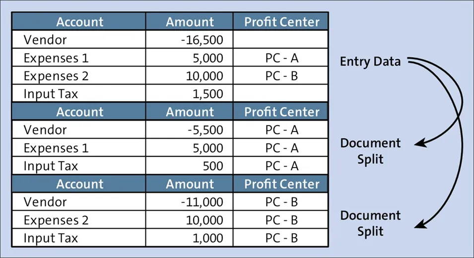 凭证拆分是一个极其强大的概念,它最初作为特殊功能在专用分类账中引入,随后作为新总账的标准功能被纳入,如今在 SAP S/4HANA 中,它通常用于在各种特征级别(如利润中心或业务部门)提供一套完整的平衡财务报表。从本质上讲,凭证拆分使您能够自动按选定维度拆分财务行项目(例如,按利润中心拆分应收行项目或按业务部门拆分应付行项目),从而使凭证在这些维度上达到零余额。在凭证拆分过程中,系统会创建额外的清算行来平衡这些维度。凭证拆分的目的是为您在定制中配置的字段(特征)创建完整的财务报表。以下是可用的特征:让我们详细了解系统如何执行凭证拆分,以供应商发票过账为例。在这种情况下,常见的情况是有多个费用行项目,它们被分配到不同的成本中心,因此也分配到不同的利润中心。如果您需要在利润中心级别获得完整、平衡的财务报表,则必须按利润中心拆分这些项目。假设一个金额为 5000 美元的费用行项目分配给了利润中心 A,另一个金额为 10000 美元的费用行项目分配给了利润中心 B。然后,系统将按下图所示进行拆分。注意系统如何使用费用行项目之间的比例(在本例中为 1:2,因为第一行项目为 5000,第二行项目为 10000)来确定必须分配给每个利润中心的金额。在此过程中,系统会在总账级别为每个利润中心过账额外的行项目。然后,它根据这个 1:2 的比例将进项税行项目拆分为两个行项目。因此,系统根据费用行项目为最初无法确定利润中心的进项税项目添加了利润中心信息。这些行项目仅在总账视图中可用,这与财务会计中过账凭证的分录视图不同。你若喜欢,点个❤️谢先👇