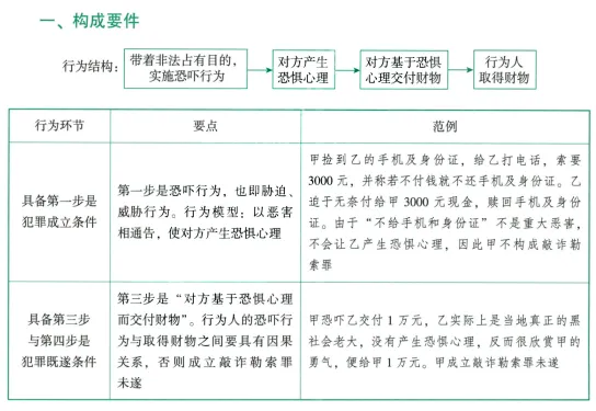 1.胁迫手段的两个当场性:威胁当场施加暴力(若不给钱,即施暴)。要求当场给钱,胁迫行为与取财行为在时间上紧密联系。