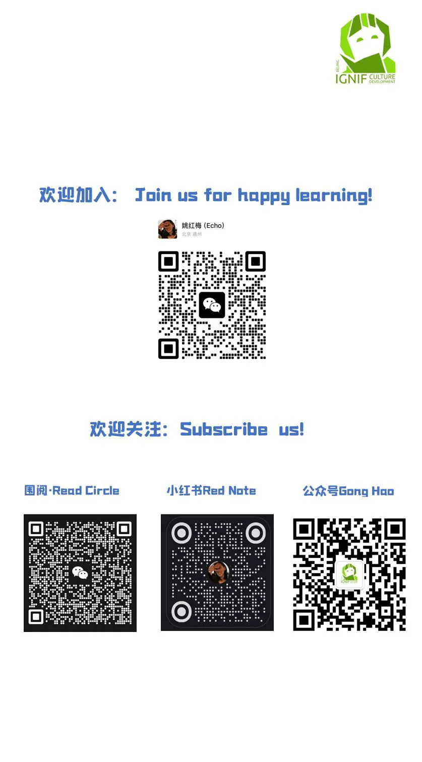 的伙伴们,我会持续分享我在读书学习与教学输出过程中的所见所闻所得,我让自己先做好一个“学生”,再尽力做好一个“输出”者,当然过程中也难免会有理解偏颇之言,请大家细心分辨吸收!如果你用智慧的双眼发现并愿意指出我分享中的一些微词,并给予我最大的善意,我将不胜感激,感谢!!