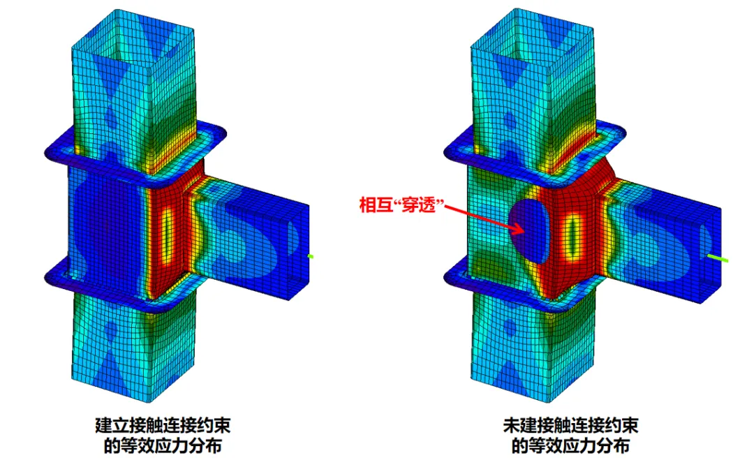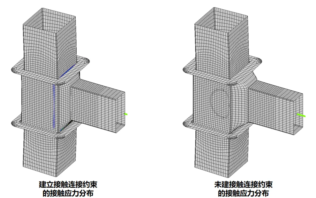 接触连接能有效避免内、外钢管柱应力“穿透”现象。
