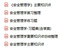 今天分享的资料是「0683-安全管理学」电子版+学习笔记+知识点总结+期末考试重点+复习资料+习题集及答案+名词解释+历年真题试卷及答案+题库及答案+复习重点+思考题及参考答案+公式总结+考试重点基础题+知识总结+高清PDF可打印+免费分享!
