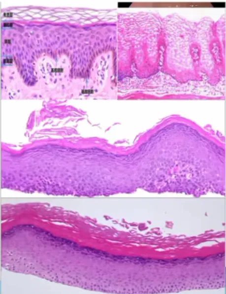 食管表皮样化生(Epidermoid metaplasia):界限清晰,上皮增生区域,具有明显的颗粒细胞层和过度角化。