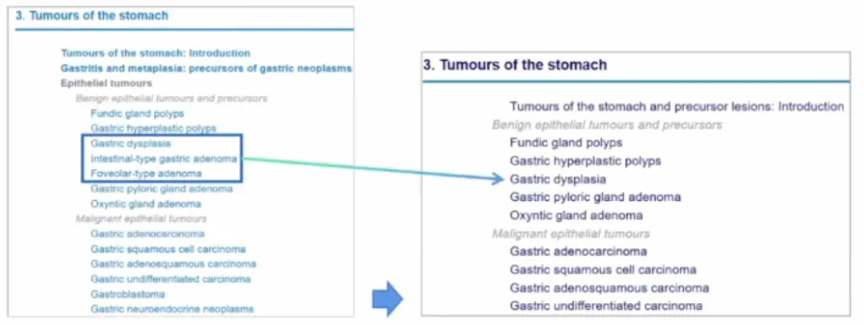 胃异型增生、肠型腺瘤和胃型腺瘤的章节合并为胃异型增生一个章节(肠型,小凹型,锯齿状、隐窝异型增生亚型);
