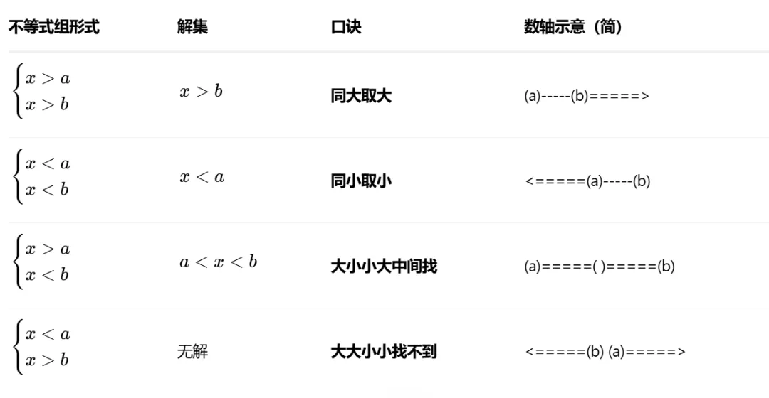 若不存在公共部分 → 不等式组无解。