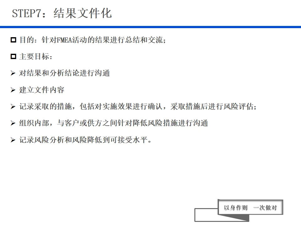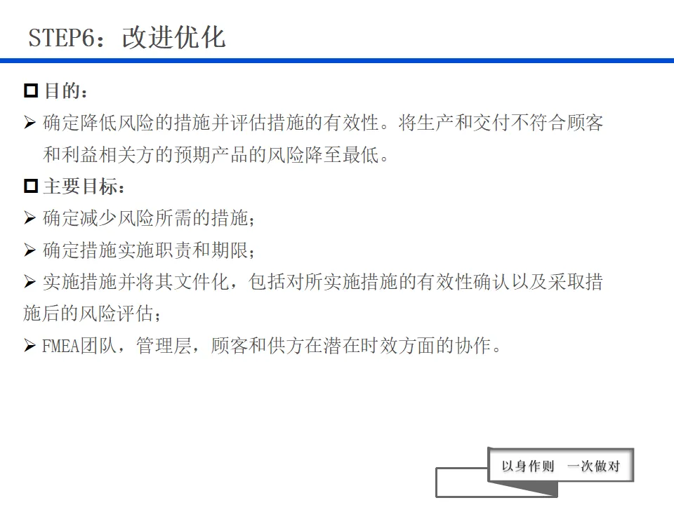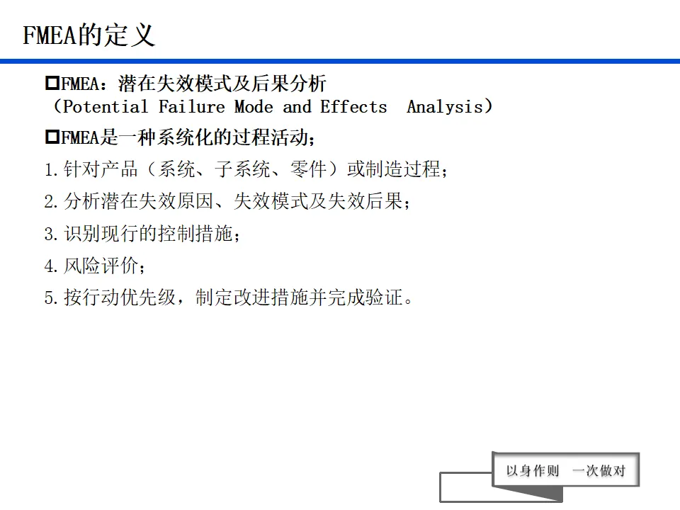 FMEA的目的是降低技术风险,从而支持产品和过程改进的设计,最终得到降低风险后的产品和过程。