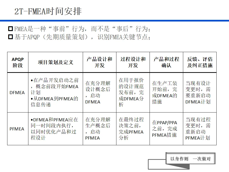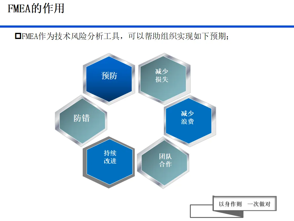:在产品设计和过程设计阶段就预防失效的发生,这是FMEA最核心的作用。