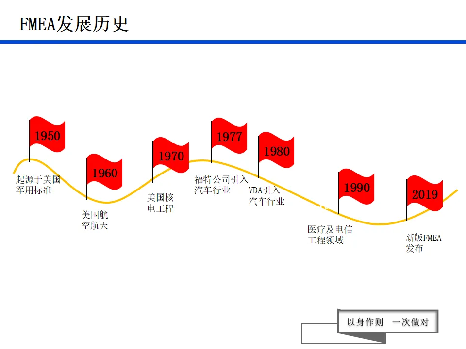 :福特汽车公司首次将FMEA引入汽车行业,用于降低产品召回风险。
