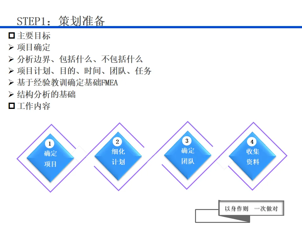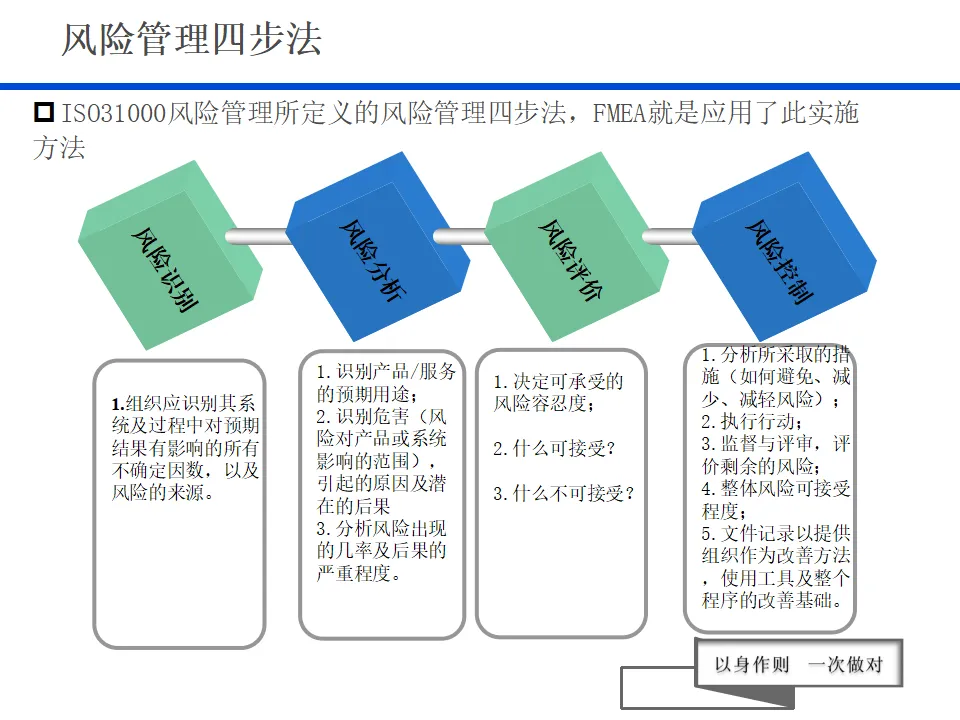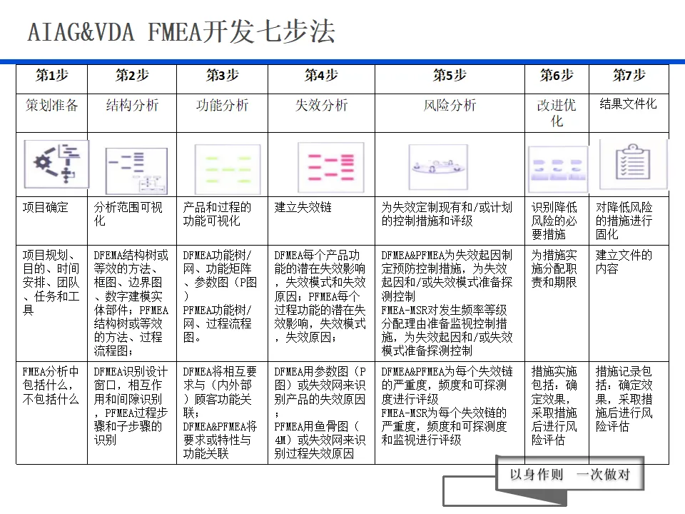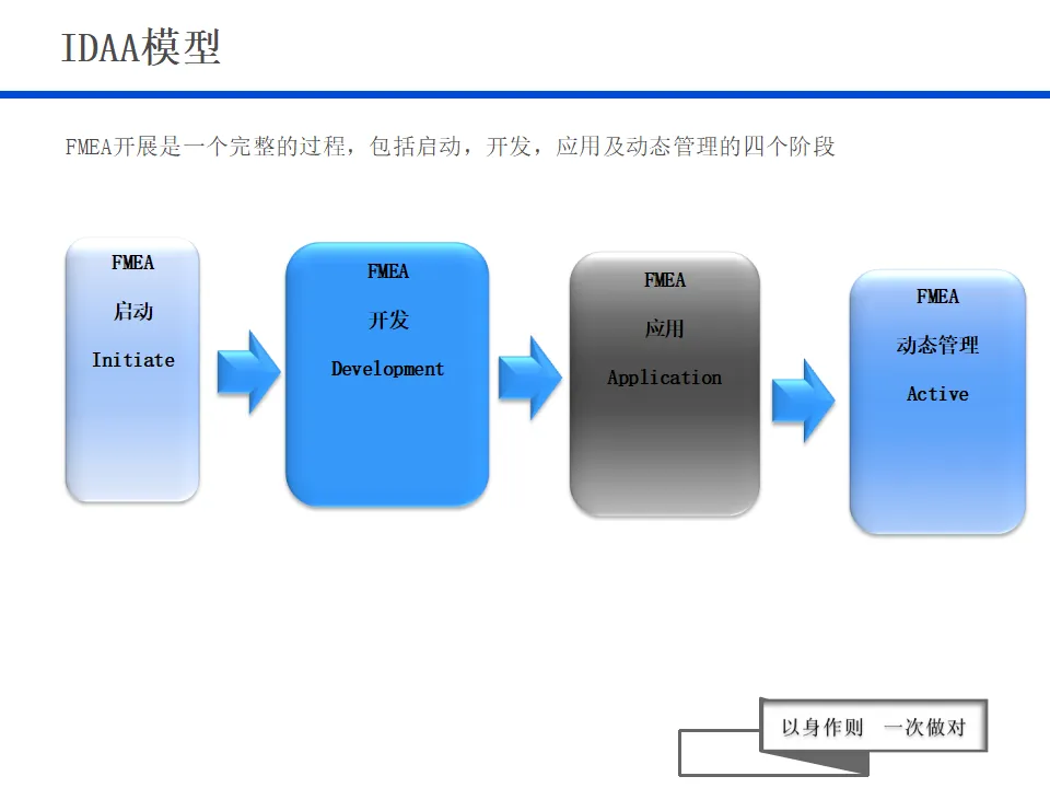 ,强调FMEA开展是一个完整的过程,包括四个阶段: