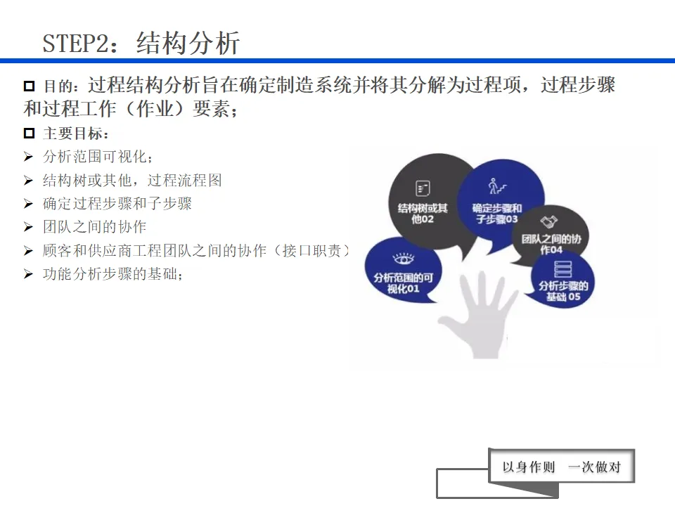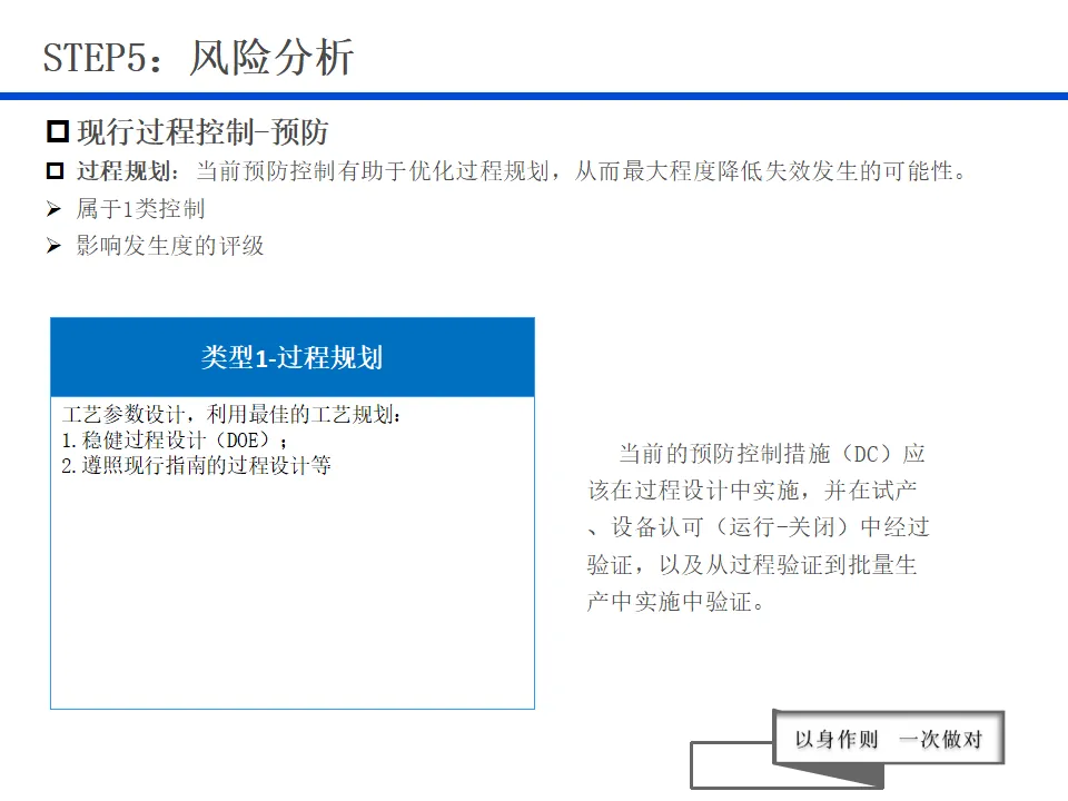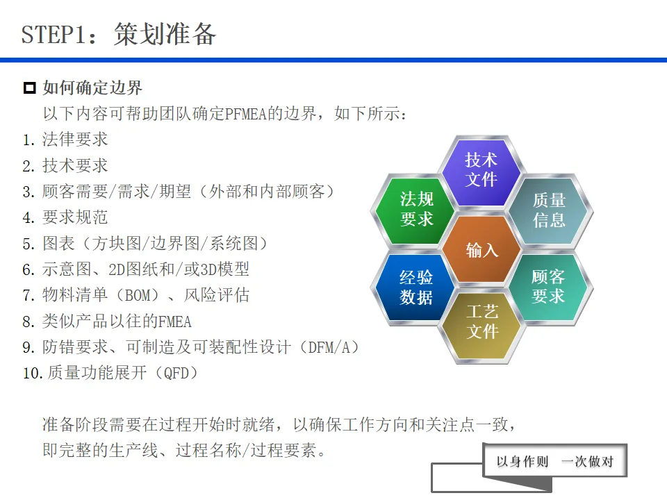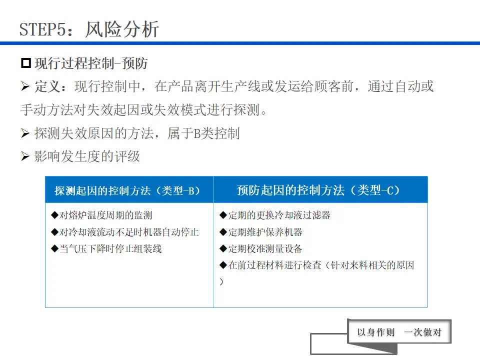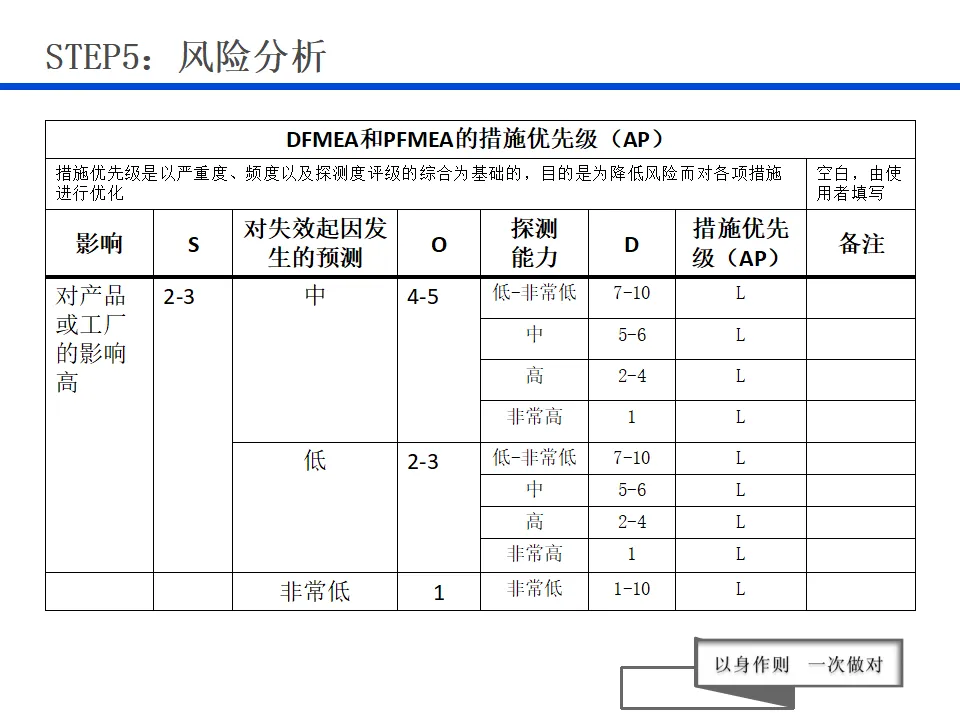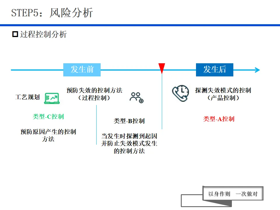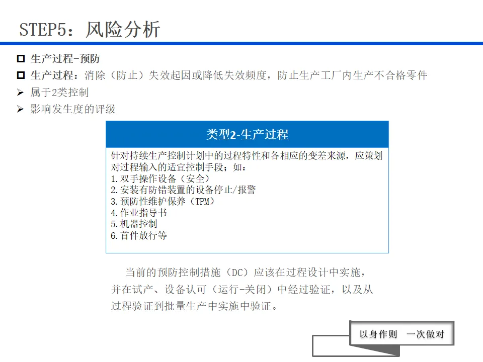 :根据过程步骤进行风险分析。PFMEA关注制造过程是否能够保证设计要求得以实现。它分析的对象是过程步骤、工位、作业要素。