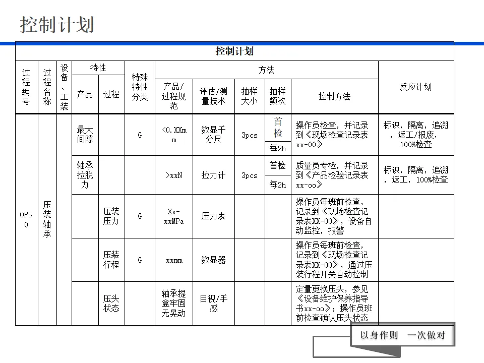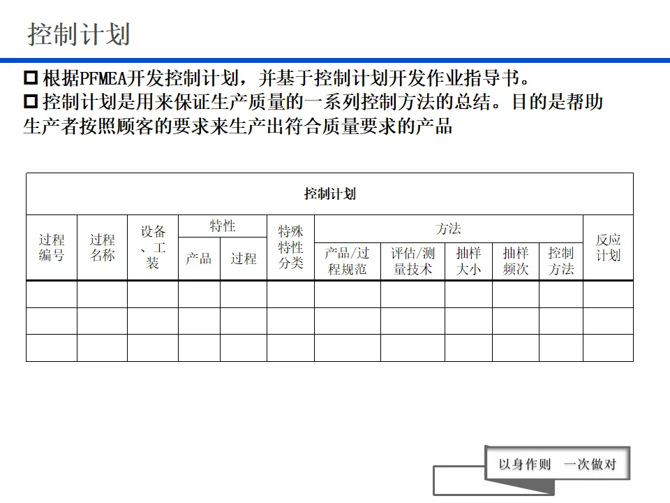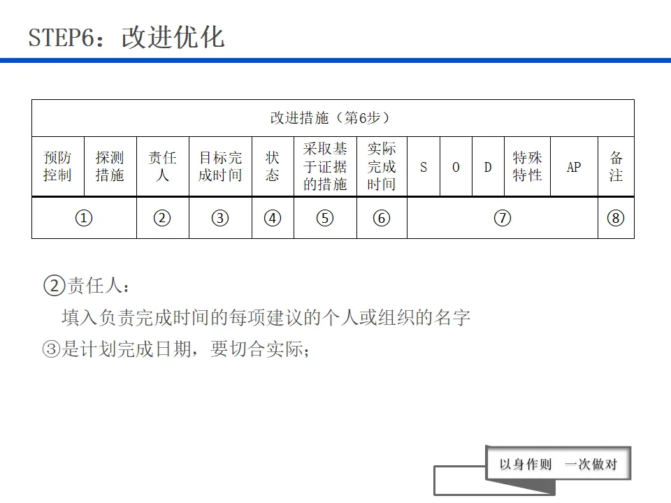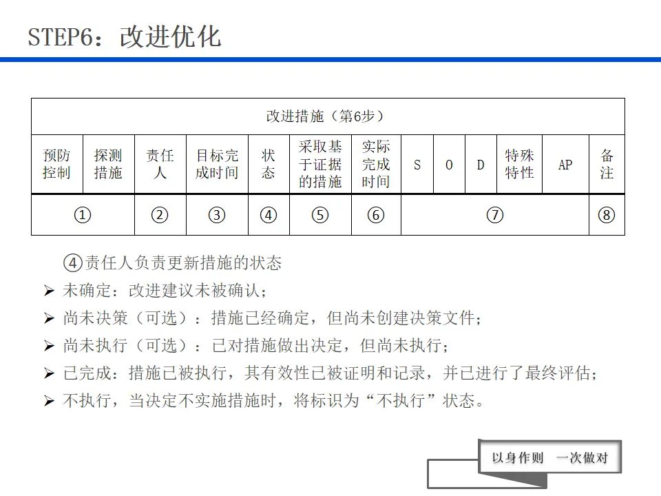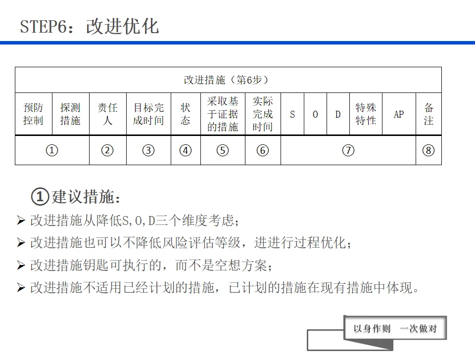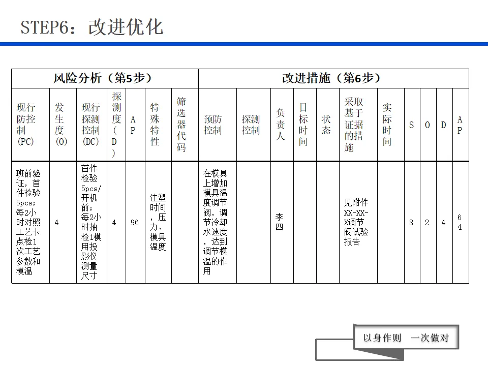 :将FMEA结果应用到控制计划、作业指导书、防错设计中。