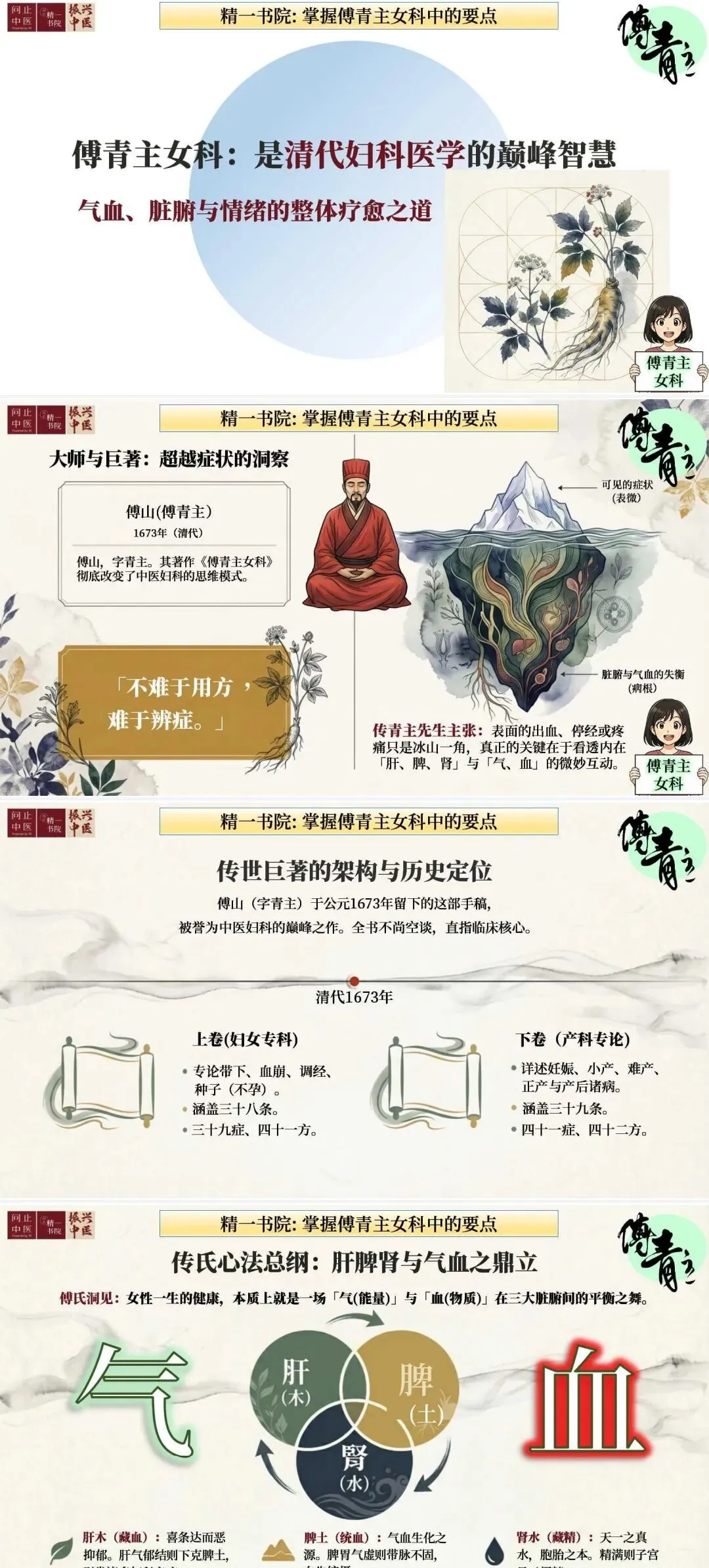 🌹本节课讲述了傅青主女科的要点以及用方心得,上半节课讲了带下、月经、血崩等问题的成因以及解决方案。