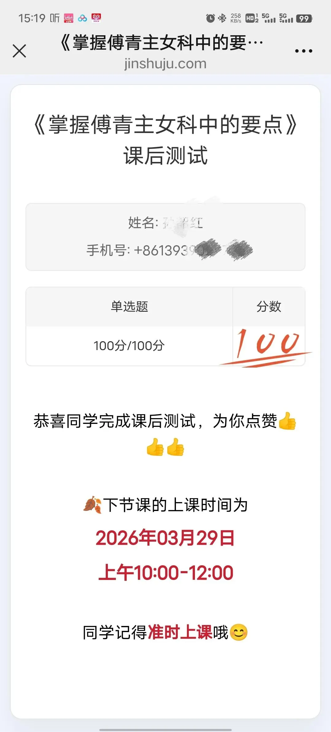 这节内容虽然感觉挺难的,迷迷糊糊听了一堂课,就像肚子塞满了山珍海味,还一点没消化呢,但做课后测试时,我依然得了100分,而且就用了两三分钟的时间!可以说都是凭直觉答的!
