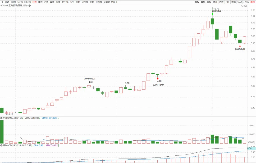 缠师在本课答疑中第一次出现了一个第三类买点的提问。关于第三类买点是在第二十课中定义的(1月5日),而本次答疑是在1月3日,其中的案例是关于工商银行日线的第三类买点。看图: