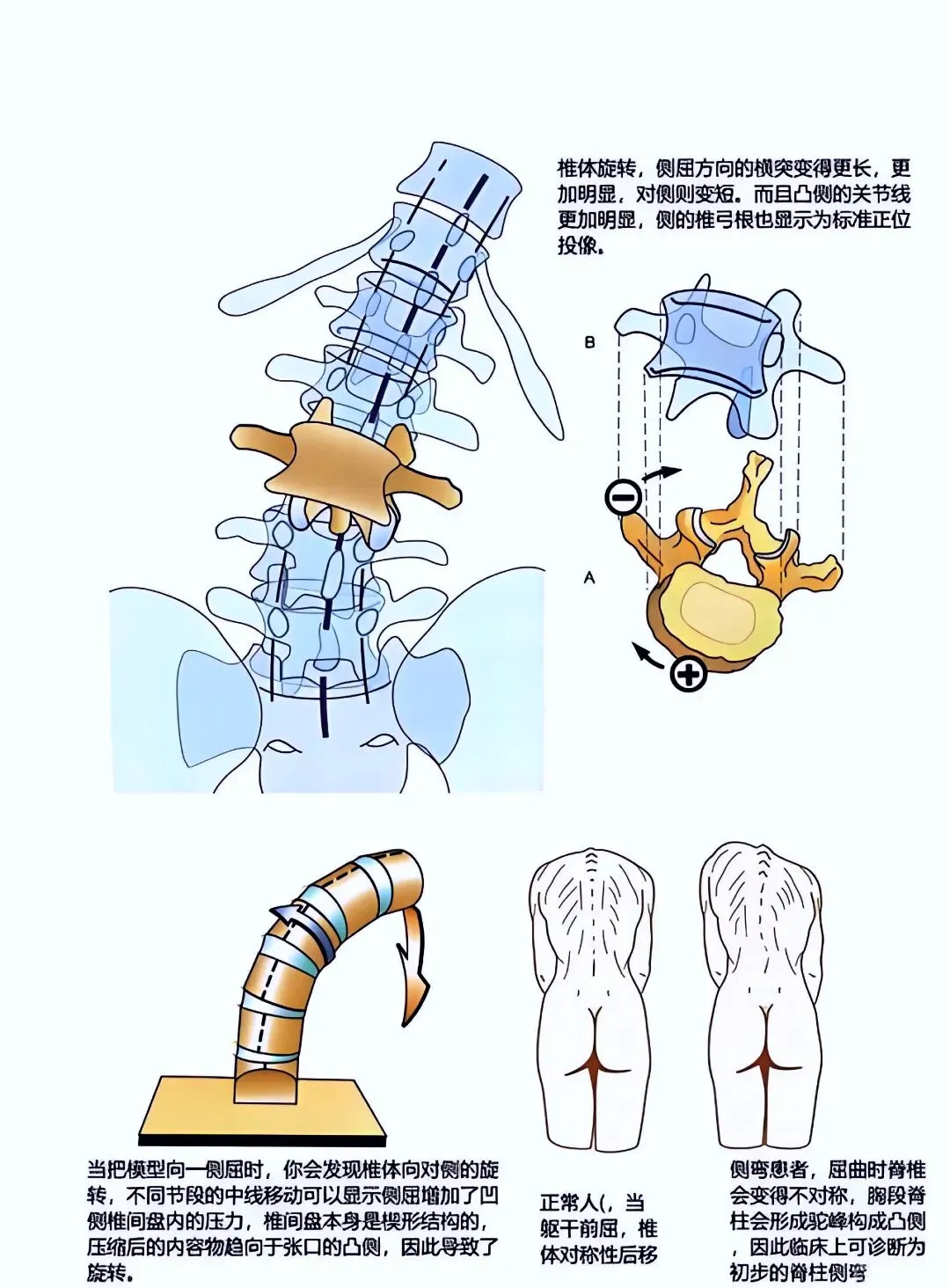 旋转因素破坏了脊柱两侧平衡的肌肉拉力方向,引起严重的脊柱侧弯。