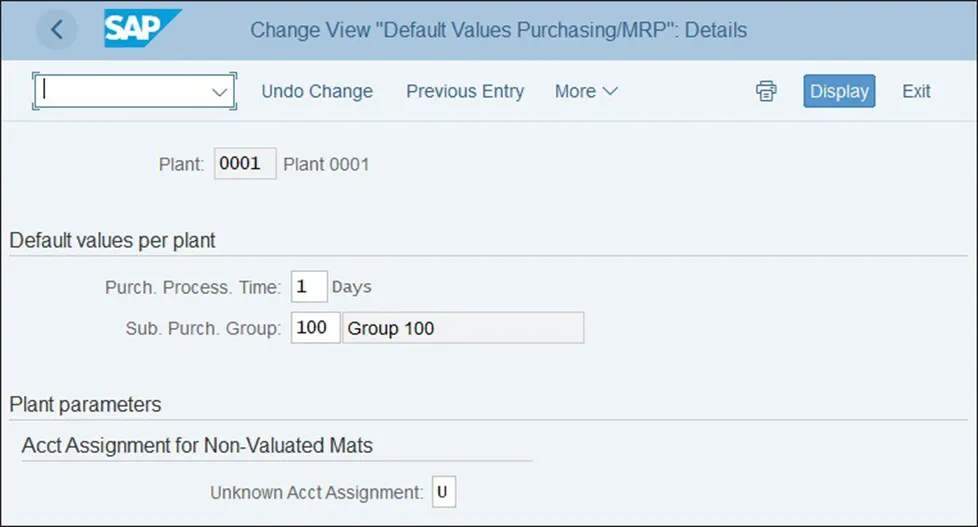采购组通常在物料主数据的“采购”选项卡中为物料定义,并在生成采购申请时由 MRP 考虑。如果物料主数据中的采购组字段为空,则 MRP 将读取在外部采购定制活动中定义的替代采购组值。还可以在“未知科目分配”字段中为未评估物料创建的采购申请定义默认科目分配。