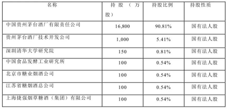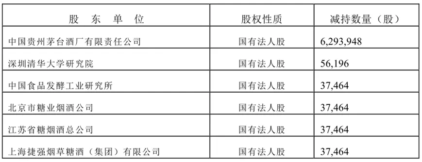注:贵州茅台酒厂技术开发公司、贵州省轻纺集体工业联社未减持。