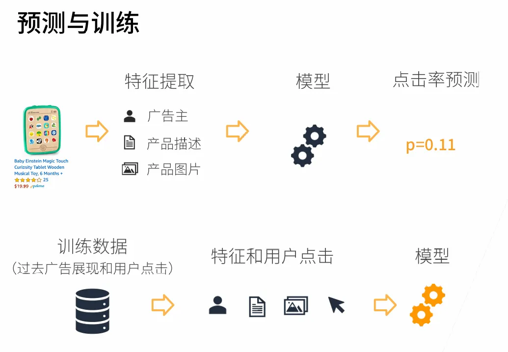 广告点击率预测,是由历史数据训练出模型,再将新数据输入到模型,进行点击率预测。