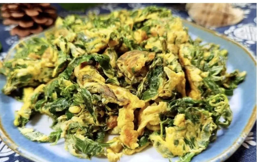 ②柳芽炒鸡蛋:把处理好的柳芽切碎和鸡蛋放上调料一起炒,香软不苦,老人孩子都可以吃。