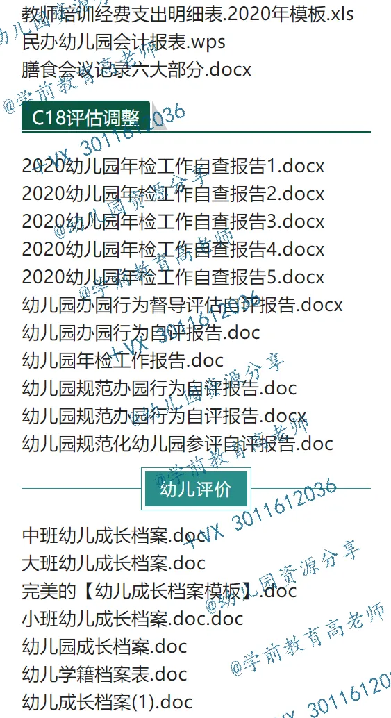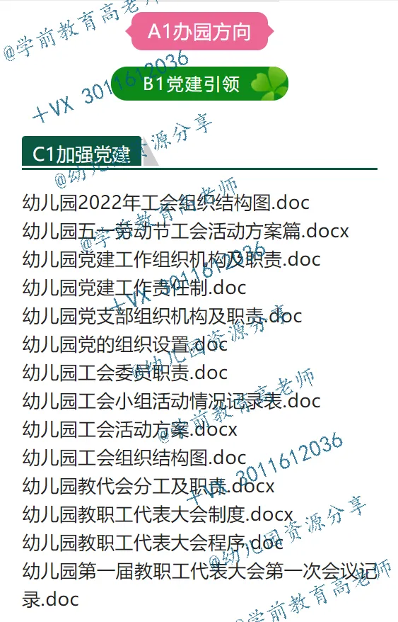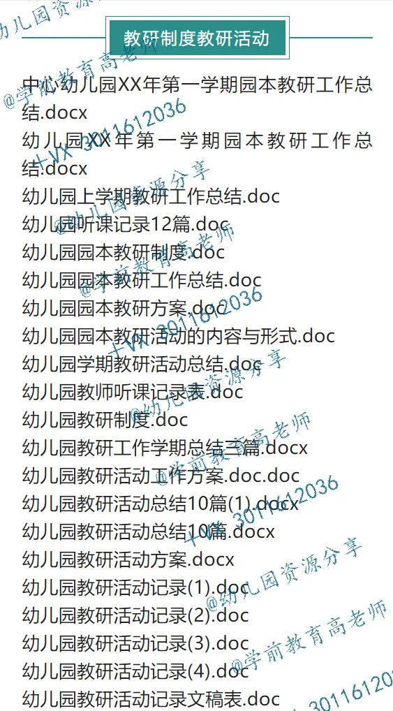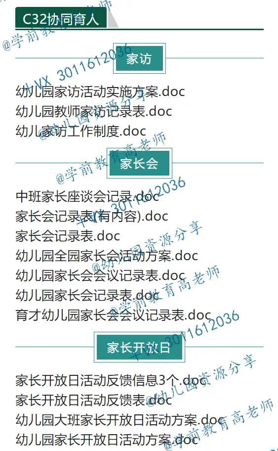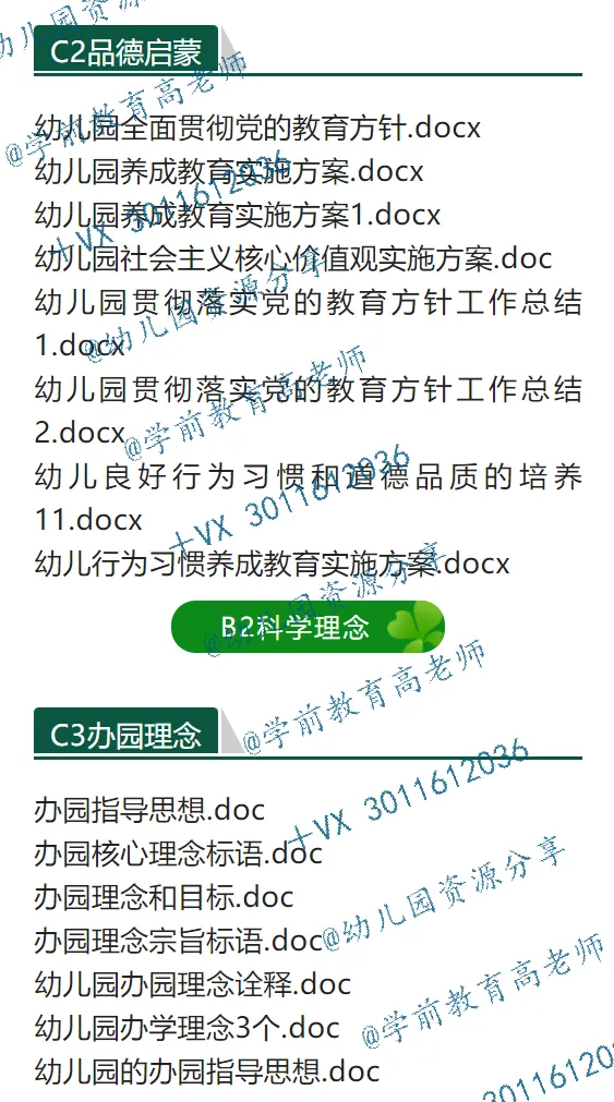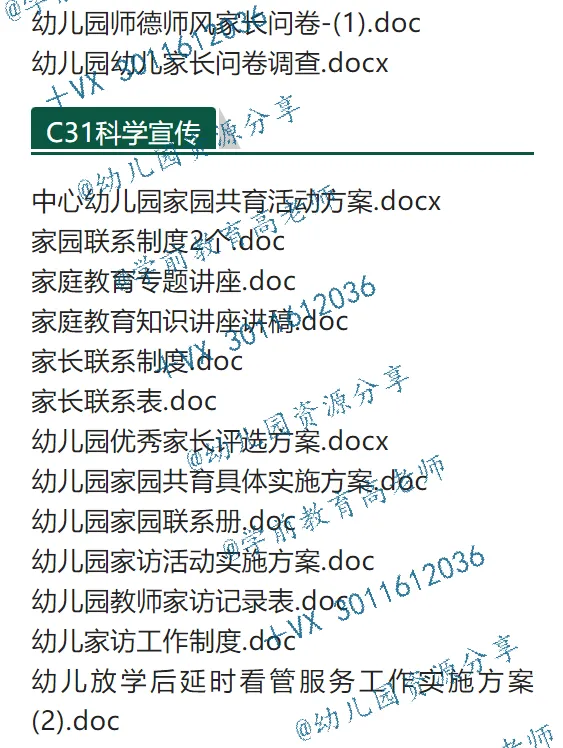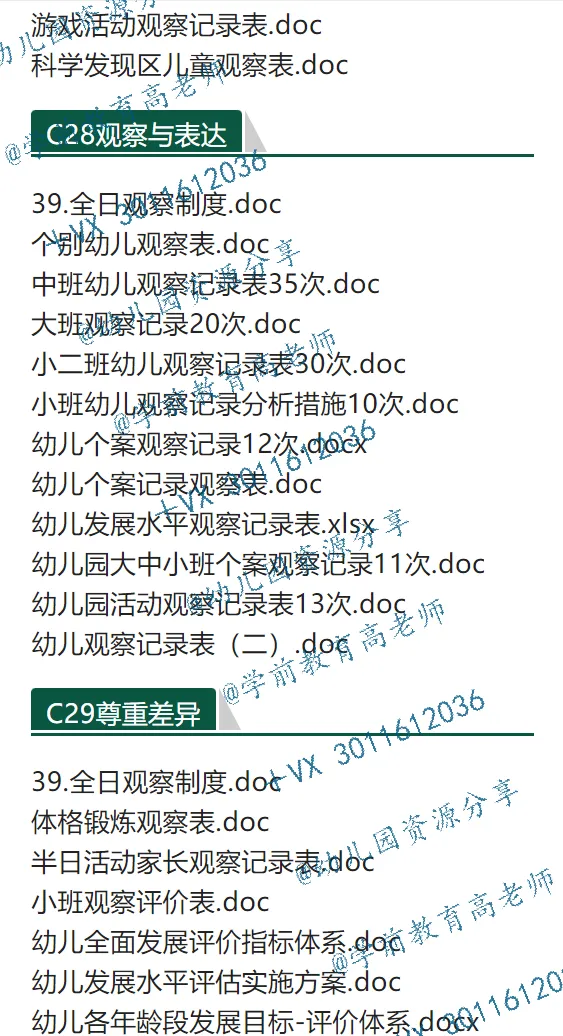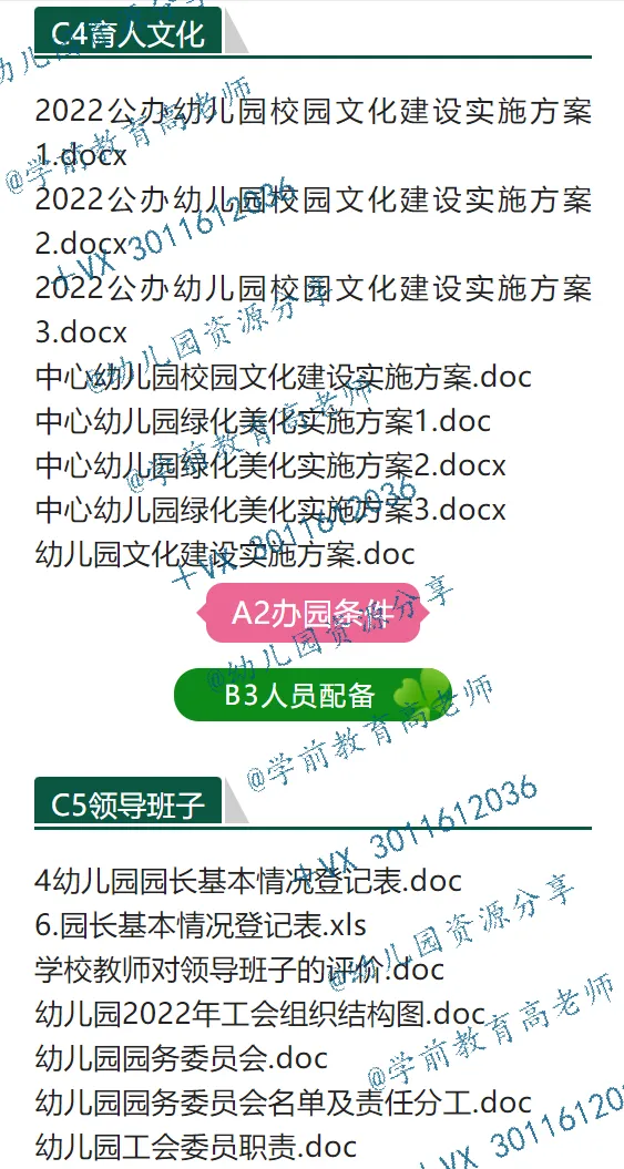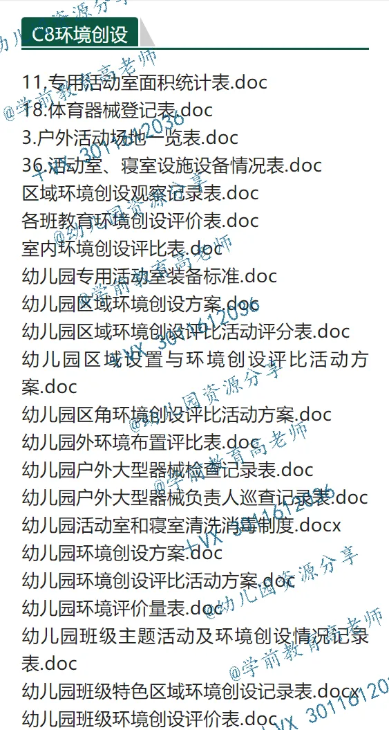 本套资料根据《幼儿园办园质量综合评价指标体系》全新整理,和细则百分百完美对应,对于幼儿园的办园质量综合评价创建工作有很好指导作用。4大版块,45个观测点,127个文件夹,1373个文档,非常细致。@+VX 3011612036 希望各幼儿园在办园质量综合评价创建工作方面一切顺利!