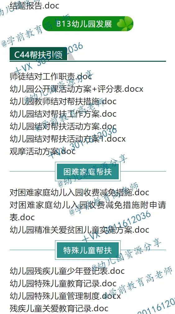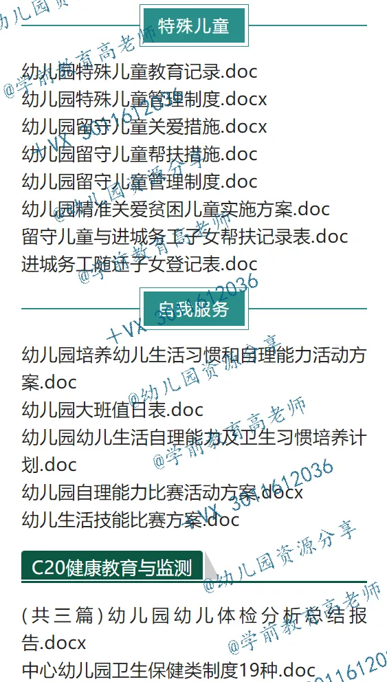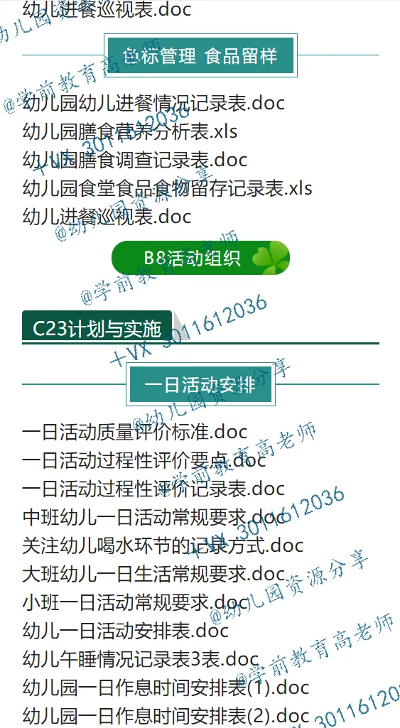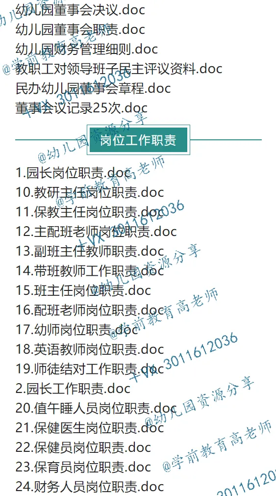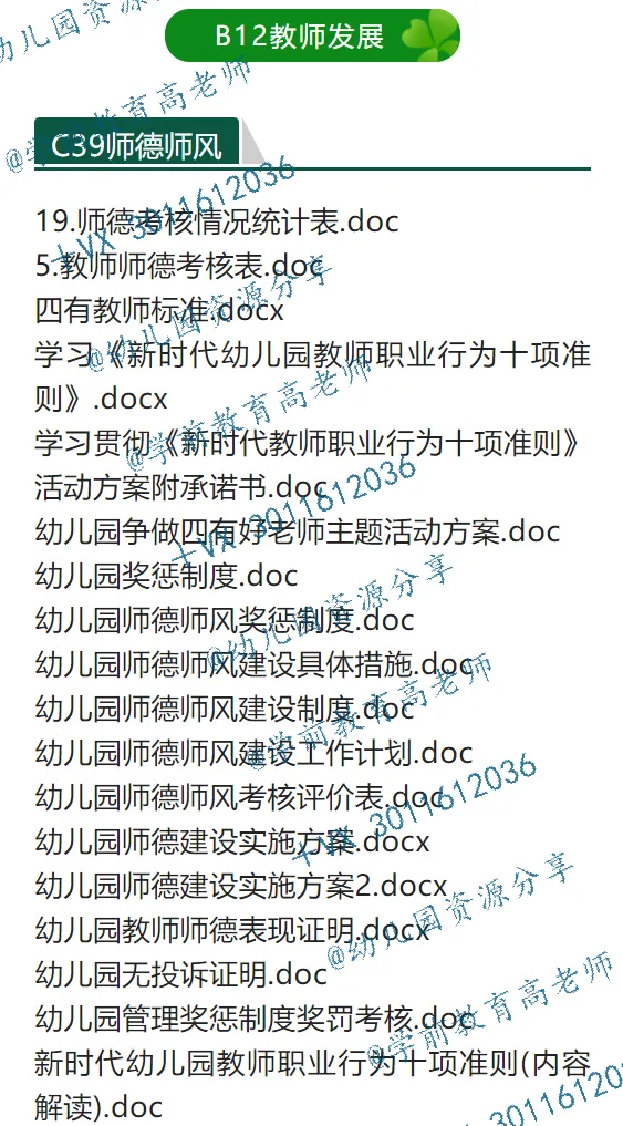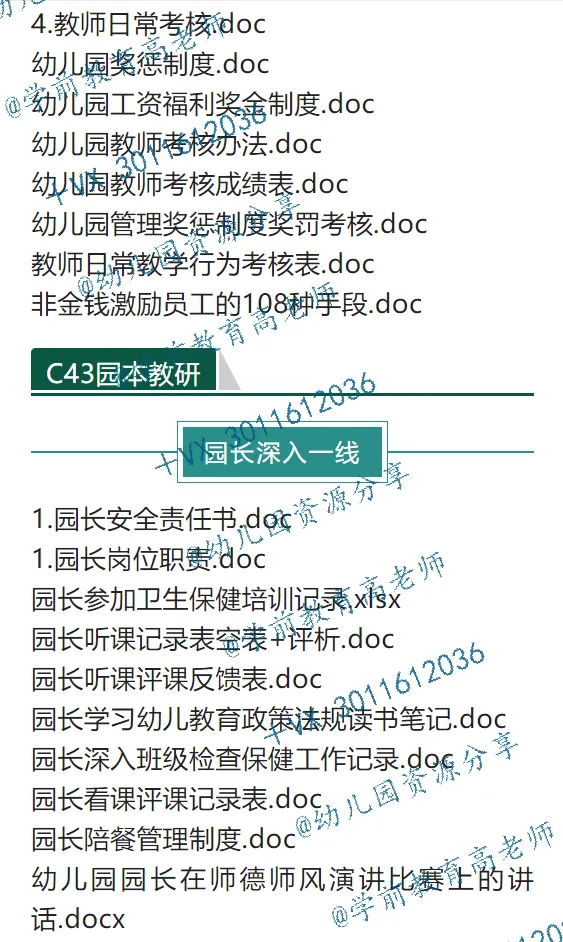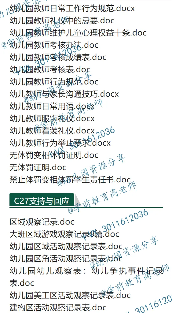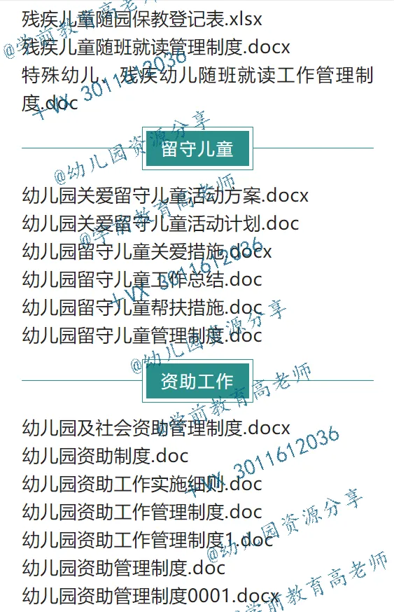 本套资料根据《幼儿园办园质量综合评价指标体系》全新整理,和细则百分百完美对应,对于幼儿园的办园质量综合评价创建工作有很好指导作用。4大版块,45个观测点,127个文件夹,1373个文档,非常细致。@+VX 3011612036 希望各幼儿园在办园质量综合评价创建工作方面一切顺利!