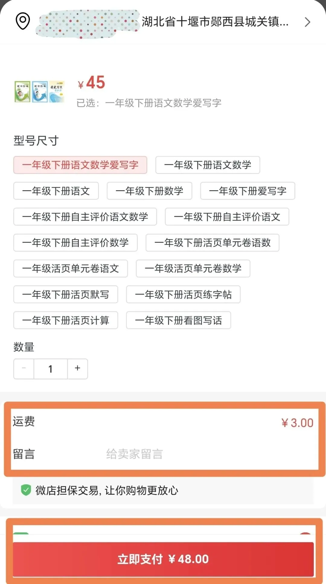 第三步:在图片右下方点击“立即购买”选择需要的商品型号。填写正确的收货人信息(包括姓名、电话、家庭地址)填写完毕后点击“立即支付”完成付款。(提示:快递版会收取3元快递费用,此费用为快递公司收取)