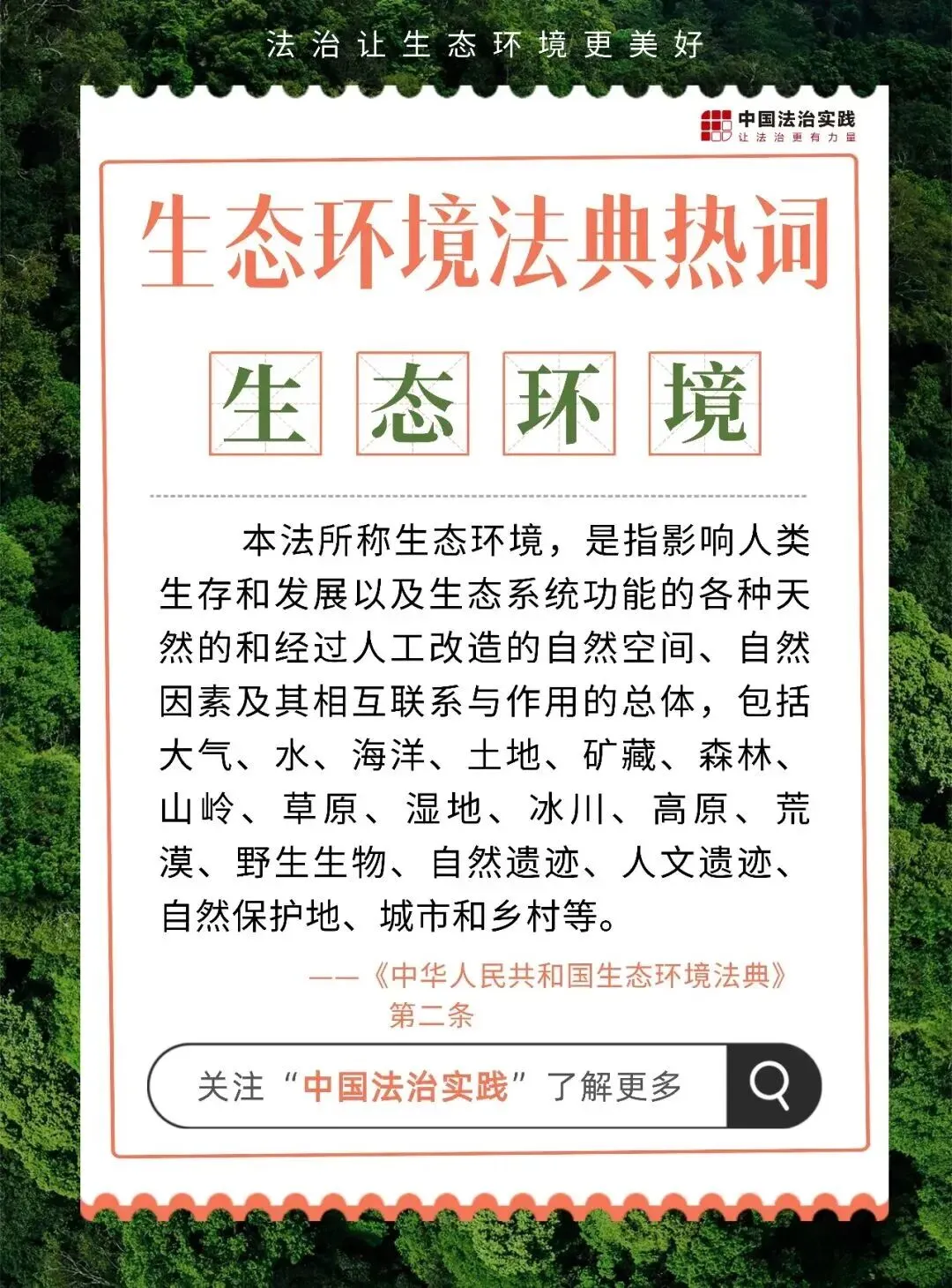 为帮助大家精准解读法典要义、快速掌握核心内容,我们梳理了30个“生态环境法典热词”,逐一明确法律内涵和依据,带大家读懂这部法典将如何影响我们每个人的生产生活,让法治力量守护每一寸绿水青山。