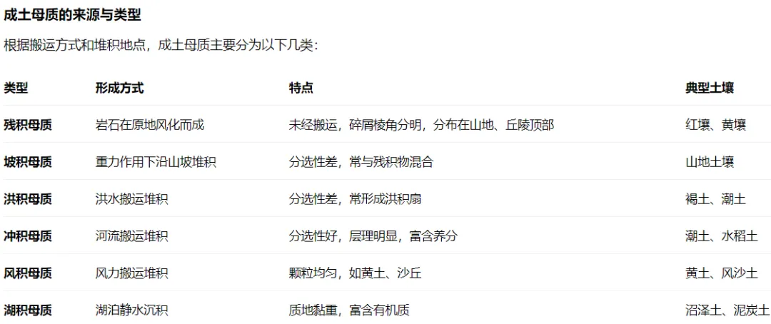 成土母质为土壤的发生发育提供最初的物质来源,是构成土壤矿物质、提供植物所需养分的物质基础,因此土壤继承了土壤母质很多重要特征。