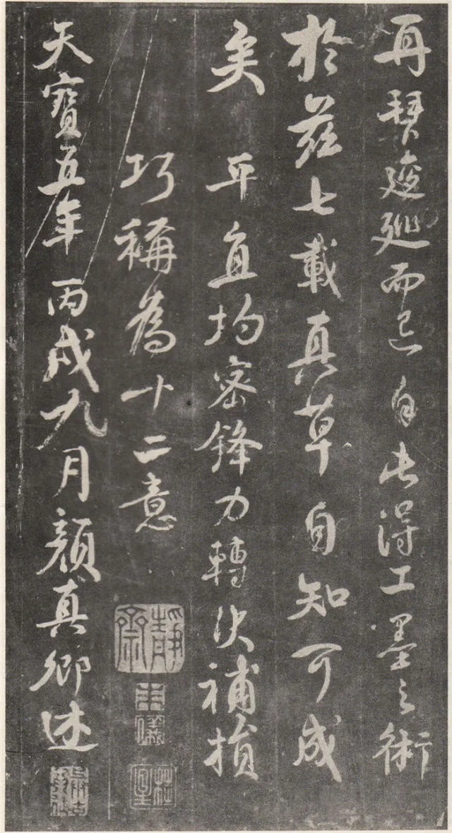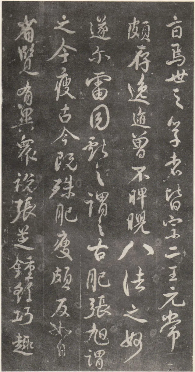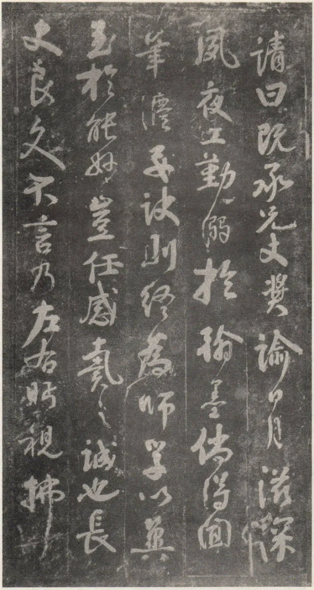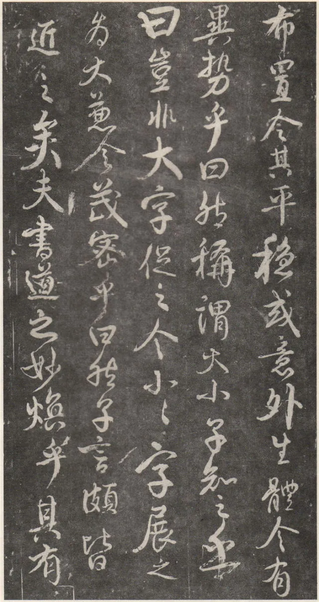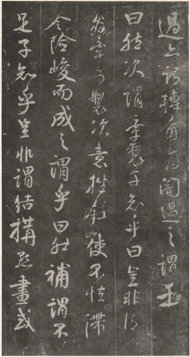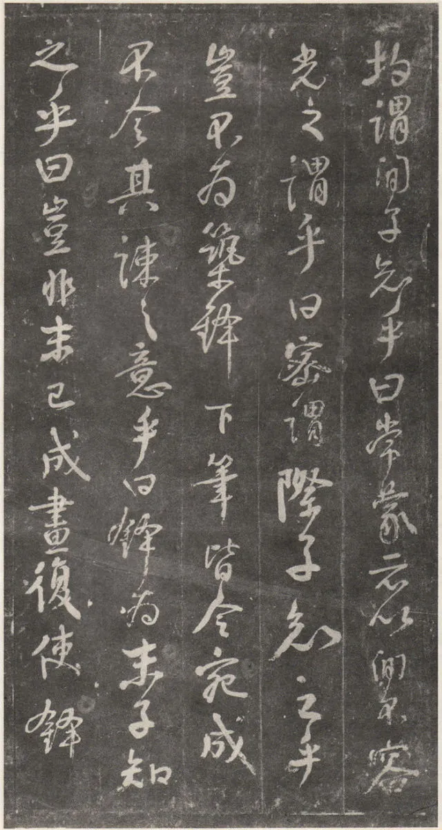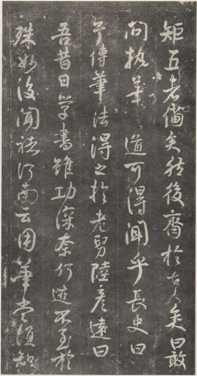 原文 余罢秩醴泉,特诣京洛,访金吾长史张公,请师笔法。长史于时在裴儆[jǐng]宅憩止,有群众师张公求笔法,或存得者,皆曰神妙。仆顷在长安二年师事张公,皆不蒙传授,人或问笔法者,皆大笑而已,即对以草书,或三纸、五纸,皆乘兴而散,不复有得其言者。仆自再于洛下相见,眷然不替。仆因问裴儆:“足下师张史有何所得?”,曰:“但书得绢、屏、素数十轴,亦偿请论笔法,惟言倍加功学临写,书法当自悟耳”。解读:这一段,颜真卿叙述了得到张旭笔法的不易:一是颜真卿两次求师笔法。即“余罢秩醴泉”和“仆顷在长安二年师事张公”这两次。二是“人或问笔法者,皆大笑而已”,包括裴儆在内,张旭只给作品,不作正面回答,更可以看出笔法的珍贵。本节有两个字需加以注意:一是“仆顷在长安二年师事张公”的“顷”字,“顷”为顷刻之意,引申为不久以前。颜真卿在长安用二年的时间“师事张公”,结合颜真卿的年谱可以大略得知此次拜师是指颜真卿在天宝二年的罢官期间。二是在原文中“或存得者”,有将“存”字写为“有”的,对比“或存得者”与“或有得者”之意,前者有仅得到只言片语之意,后者则是似乎已经得到了张旭的论书的全部。当时李白、李阳冰、贺知章都不同程度的受到了张旭的影响,颜真卿和崔邈是写在史书上张旭的嫡传弟子,又“存”字为拓片所固有,故认为“存”字比较符合此节的文意,也符合情理。原文 仆自停裴家,因与裴儆从长史月余。一夕前请,曰:“既承兄丈奖谕,日月滋深,夙夜工勤,溺于翰墨,倘得闻笔法要诀,则终为师学,以冀至于能妙,岂任感戴之诚也!”。长史良久不言,乃左右眄[miǎn]视,拂然而起。仆乃从行来至竹林院小堂,张公乃当堂踞床而坐,命仆居于小榻而曰:“笔法玄微,难妄传授。非志士高人,讵可与言要妙也。书之求能,且攻真草,今以授之,可须思妙”。解读:此节叙述了颜真卿通过真诚的表白,终于打动了张旭。有两点需加注意:一是“既承兄丈奖谕”的“兄丈”二字,“兄”字古有师长之意,故在古代非师徒关系的一方称对方为兄时,对方一般不称对方为弟;“丈“字有尊敬的长者之意。因此“兄丈”二字,可理解为前辈、老人家。由此可以推断此刻的颜真卿还不是张旭的徒弟,否则颜真卿可直接称呼张旭为“恩师”、“尊师”或“吾师”。二是张旭指出草书和真书双修的学书主张,在《唐人书评》所列的十二位唐朝草书大家中,有着“唐朝第一妙腕”之称的孙过庭(排名第二,位列张旭之后)在《书谱》中说:“草不兼真,殆于专谨;真不通草,殊非翰札”,真草一起学习的观点在这里得到了草圣张旭的再一次明确印证。原文 乃曰“夫平谓横,子知之乎?”,仆思以对之曰:“尝闻长史示令每为一平画,皆须令纵横有象,非此之谓乎?”,长史乃笑曰:“然”。解读:汉字中,横竖笔画最多。在张旭与颜真卿探讨这个问题前已多有论述。主要就是横划的书写要有起伏,不得拖笔,线条要有弹性,就像骑手的马缰绳——徐放徐收;一幅作品中以看不到横划的突兀排列为美,忌“堆柴”之弊。原文 “直谓纵,子知之乎?”,曰:“岂非直者从,不令邪曲之谓乎?”,曰:“然”。解读:竖划必须“从”于横划,注意横竖之间的呼应。在保证竖划相对较直的同时,一字之中的两竖不得等同“立柱”,否则极易生硬、僵死,状如算子;一字之中的竖划主笔要尽量不与作品的总体横势相垂直,否则容易失去上下的连贯,出现“直则无力”的弊病。同时竖划不宜过长,因为把握不好就会造成“割纸”的错觉。原文 “均谓间,子知乎?”,曰:“常蒙示以间不容光之谓乎?”解读:方面在笔墨散开时要取法自然,和谐统一,收拢后要计白当黑,不争不犯。另一方面要处理好直与非直,密与非密等辩证关系,力争在矛盾双方由此及彼的桥梁上行走。原文 曰:“密谓际,子知之乎?…岂不为筑锋下笔皆令宛成,不令其疏之意乎?” 解读:相关联的下一笔要果敢有力,承接处就像盖房子中柱子与檩柁之间的咬合。“筑”,捣也,意为由上而下的击打;“宛”,凹进去的意思。原文 曰:“锋谓末,子知之乎?”,曰:“岂非末已成画,复使锋健之谓乎?”,曰:“然”。解读:一方面末笔出锋要意完神足,如“也”字楷书末笔要缓起轻收,形成的钝势小勾就像刚刚把弓拉满,箭头被一点点的缩到了弓背的挽手处的样子;另一方面,在书写过程中要注意笔锋的调整,切不可因为是末笔就草率为之,造成笔锋的“散包”和线条的“泄气”。原文 “力谓骨体,子知之乎?”,“岂非谓趯[tì]笔,则点画皆有筋骨,字体自然雄媚之谓乎?”。解读:“趯”,意为跳跃,在永字八法中指“钩”。书法中所谓的“力”,是指各种线条按着不同字形组合起来后,所表现出来的一种张力和视觉上的冲击,这种力不是蛮力,是以具象对抽象的审美表述。张旭对颜真卿的回答没有表态,说明颜真卿的回答尚不够准确。原文 曰:“转轻谓展折,子知之乎?”,曰:“岂非钩笔转角,折锋轻过,亦谓转角为暗过之谓乎?”,曰:“然”。解读:在书写“横折拐角处”时,由左而右,在拐点处稍右再回锋于拐点,调锋而下;在书写“钩”时,锋至出锋处依然暗过之,而后蹲锋回返向上左出。“展”,转也。原文 “次谓牵掣,子知乎?”,曰:“岂非谓为牵为制,次意挫锋,使不怯滞,令险峻而成之谓乎?”,曰:“然”。解读:两个笔划的连接处,常常会出现游丝,这种游丝起到了局部与整体