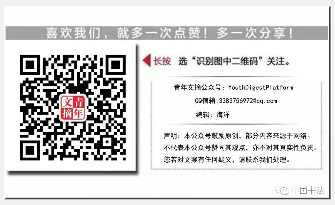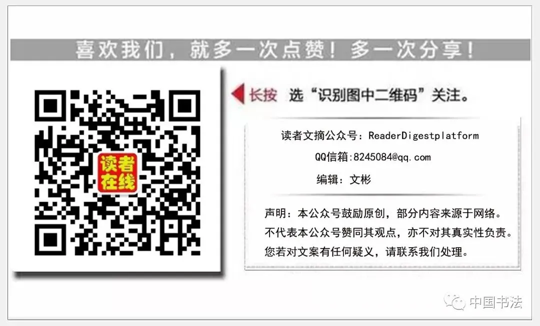 欢迎您加入“中国书法”平台,也欢迎您加入“青年文摘”微信公众号和“读者在线”微信公众号平台。希望可以通过您的帮助加快平台的影响力,我们会努力的做好平台的服务工作,欢迎您提出宝贵意见。