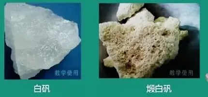 (1)白矾:“白矾煅枯忌搅拌,蜂窝状时收敛强。”