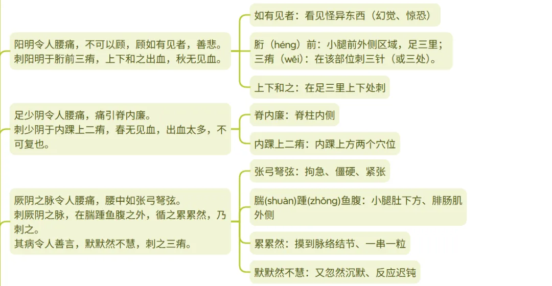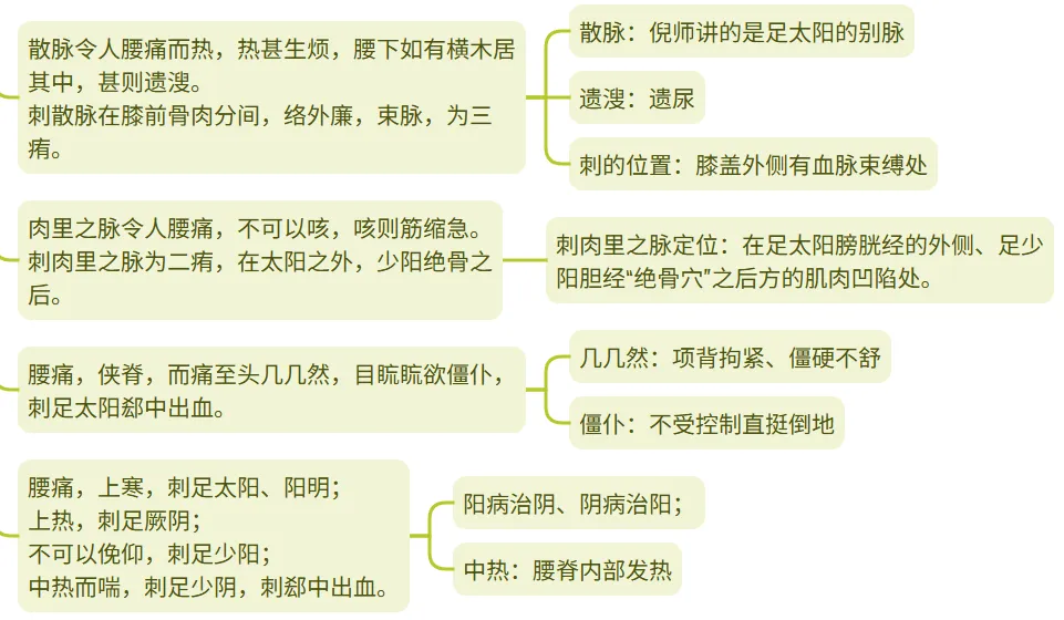 现在在学习倪海厦老师的人纪·黄帝内经部分,笔记有老师讲的和我自己用AI翻译的内容。今天学习了腰痛篇第四十一,内容和笔记如下:一、主要内容:本篇主要讲了六经、八脉、脏腑所致的腰痛。