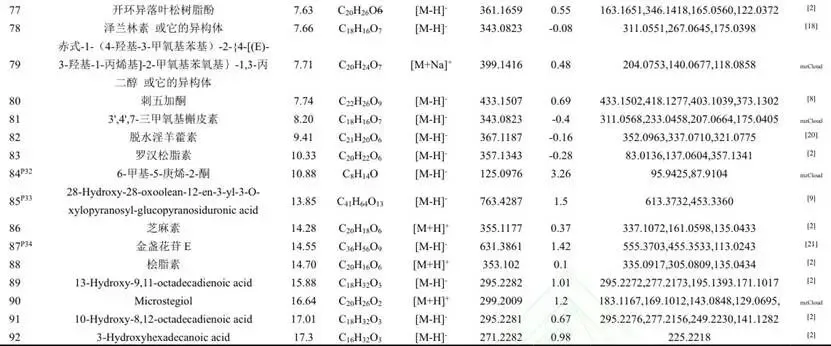 此类化合物裂解特征主要源于羧基丢失、脱羟基、脱甲基及苯环重排 [[中药分析]]。