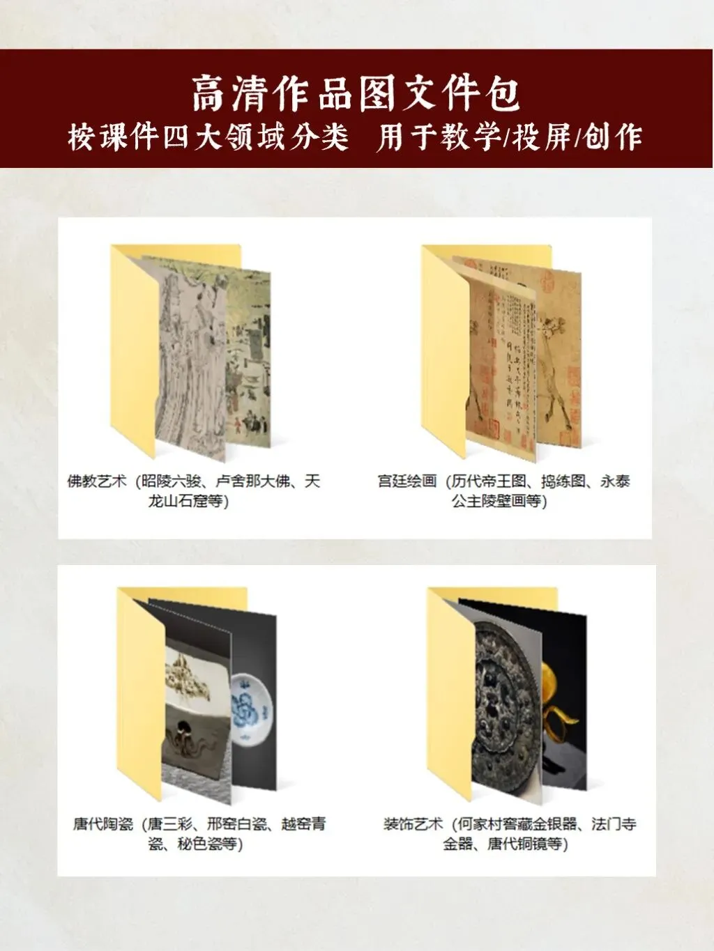 为了方便学习、教学与素材使用,我把整套唐代艺术学习内容,整理成了可编辑的文档笔记,同时配套整理了独立高清作品图包: