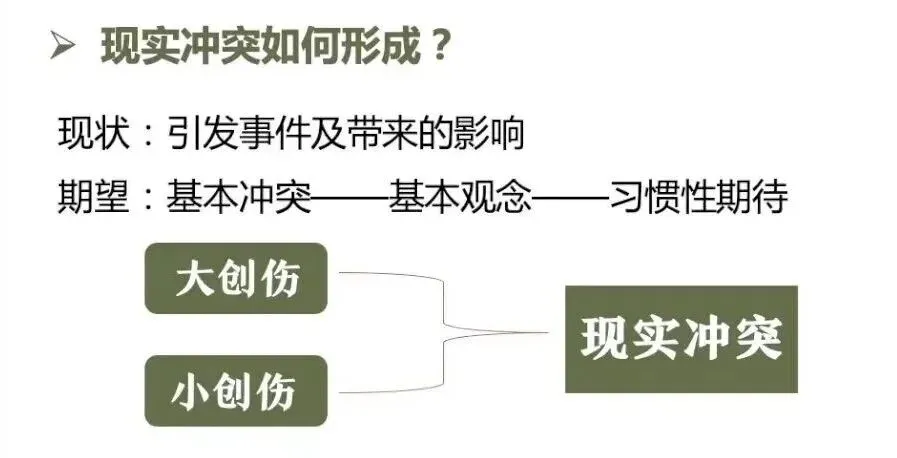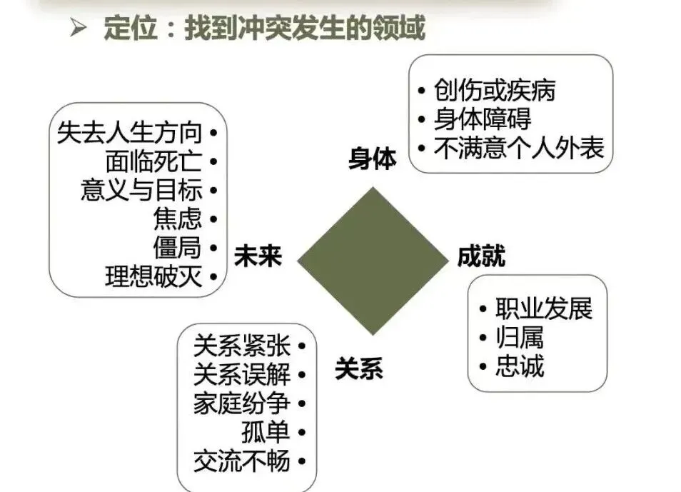 积极心理治疗以冲突为核心。理解冲突的过程,也是个案概念化的过程。同时为化解冲突提供依据和指导。