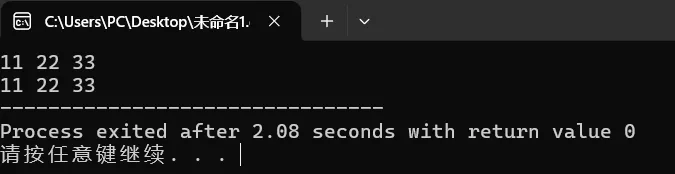 #include<bits/stdc++.h>using namespace std;intmain(){ int a, b, c;//定义三个整型变量 cin >> a >> b >> c;//分别输入三个数字 给a b c cout << a << " " << b << " " << c;//输出变量中对应的值 return 0;}