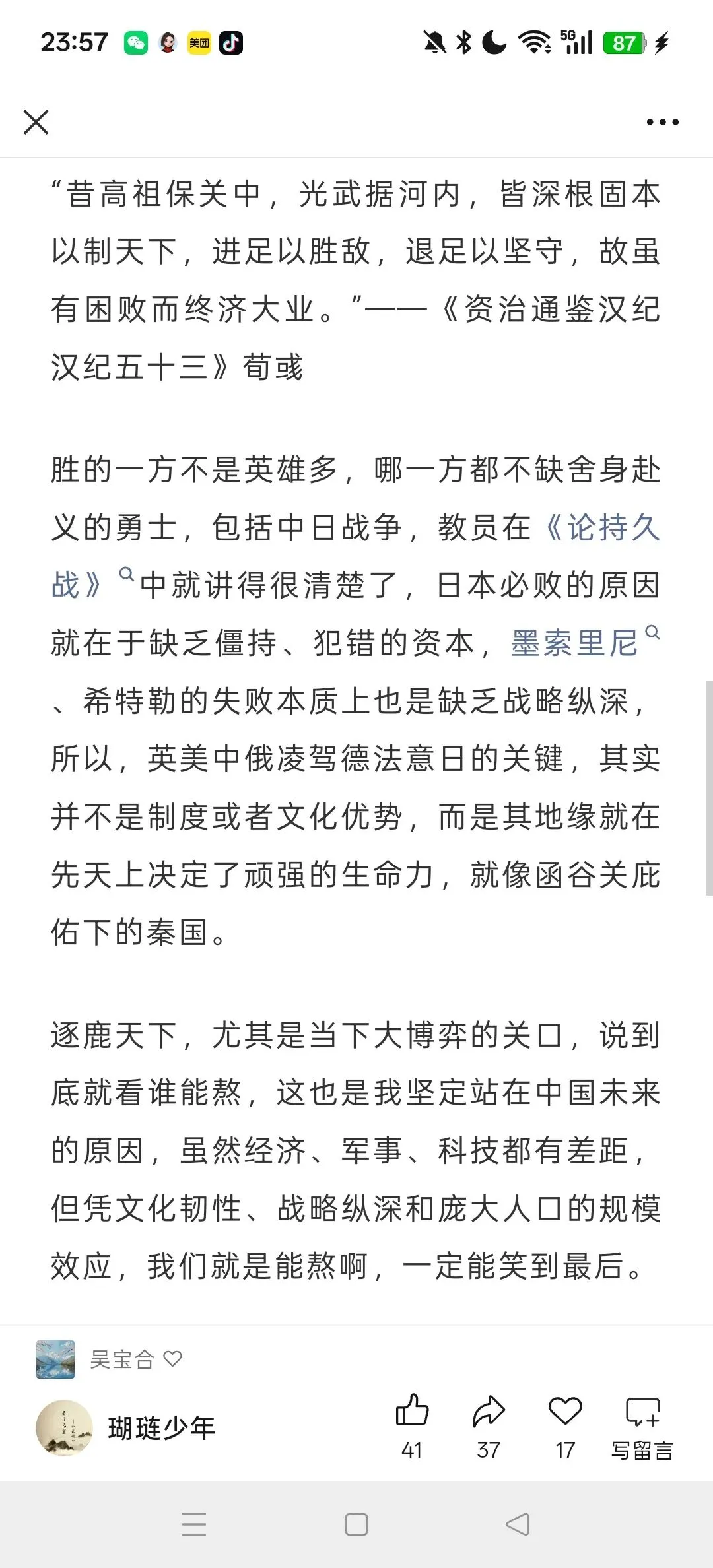 - 历史验证:秦国靠函谷关、中国靠战略纵深,都能在大败后休养生息,最终熬到胜利;而魏、德日等因缺乏纵深,一败便衰。
