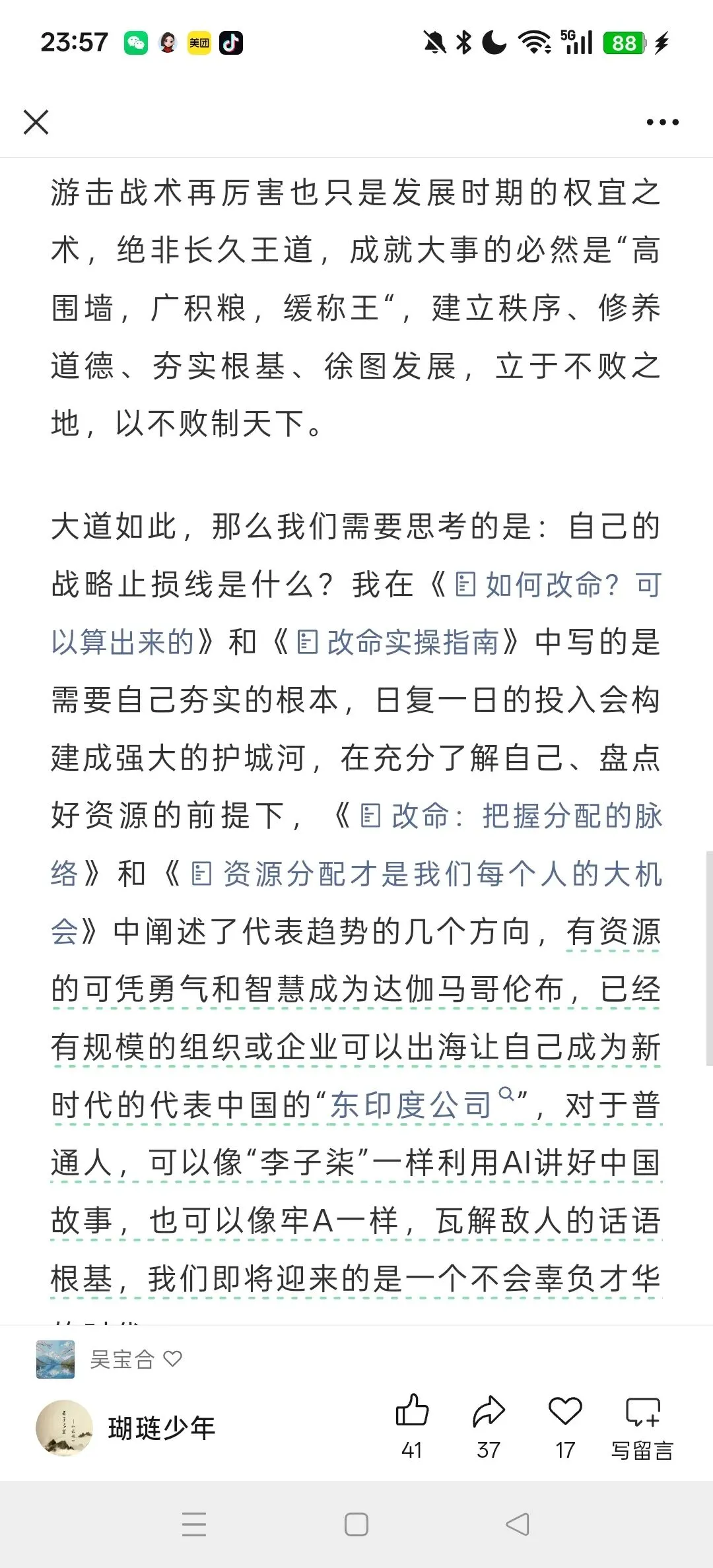 - 资源布局:像作者一样,将人力、财力、基本盘分层配置,分散风险,确保总有退路。