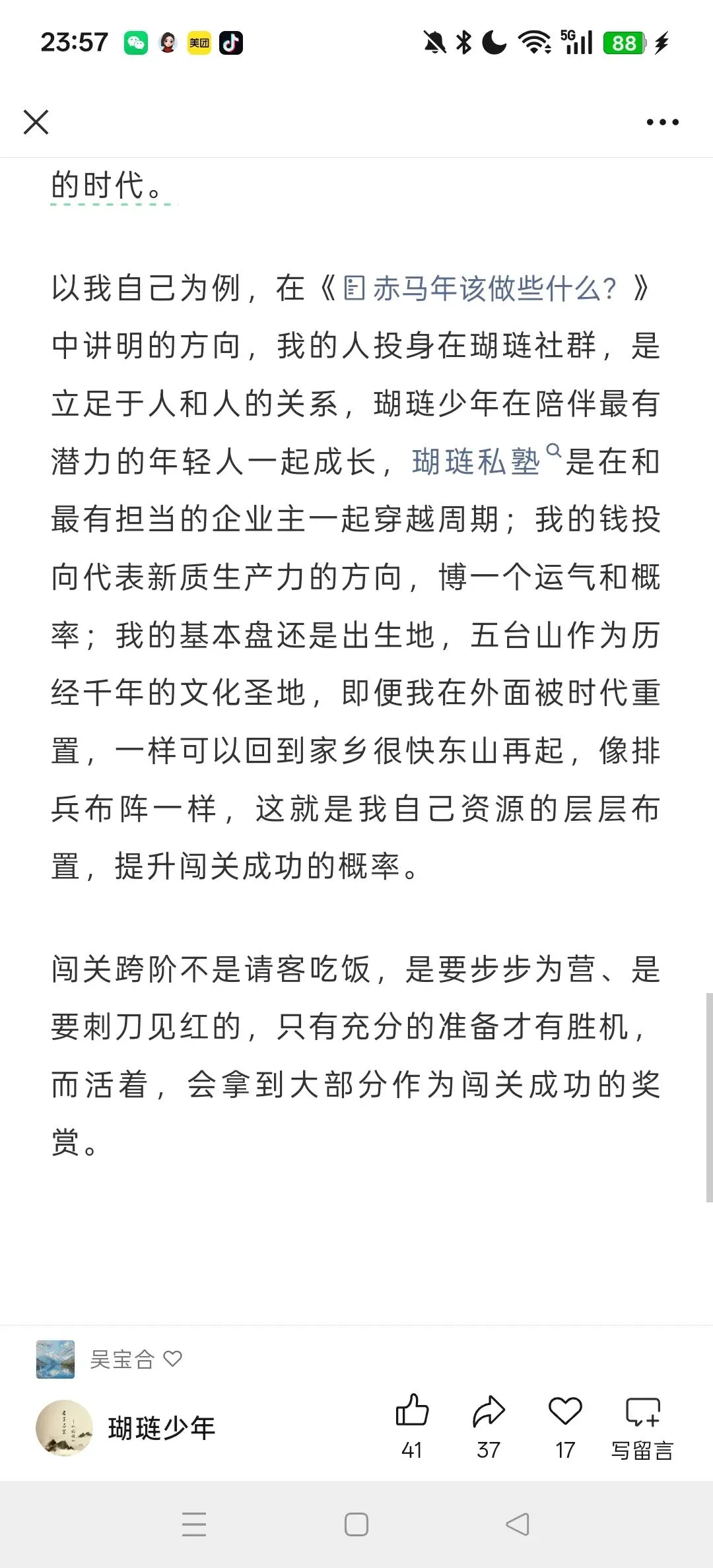 - 人力:深耕1-2个核心社群/圈子,积累可共患难的人脉。