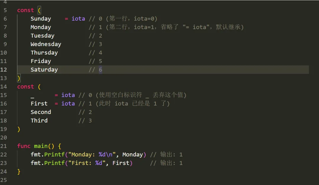 Go语言中的常量和 C 中有 #define 有一点类似,会在编译时替换为你定义的字面量