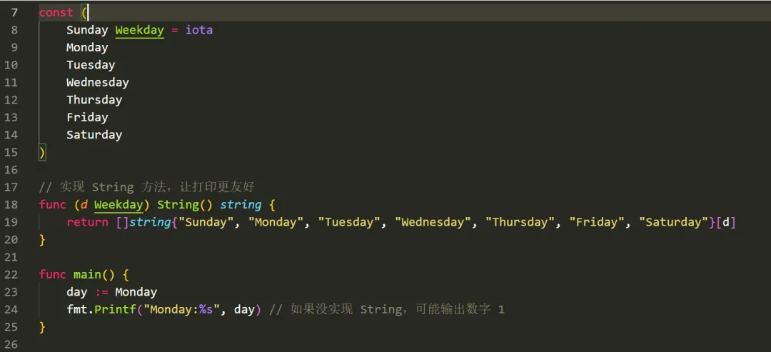 你还可以有使用有类型的常量,作为枚举类型,顺便加上打印方法