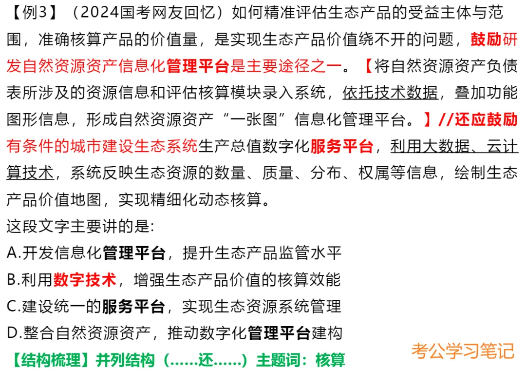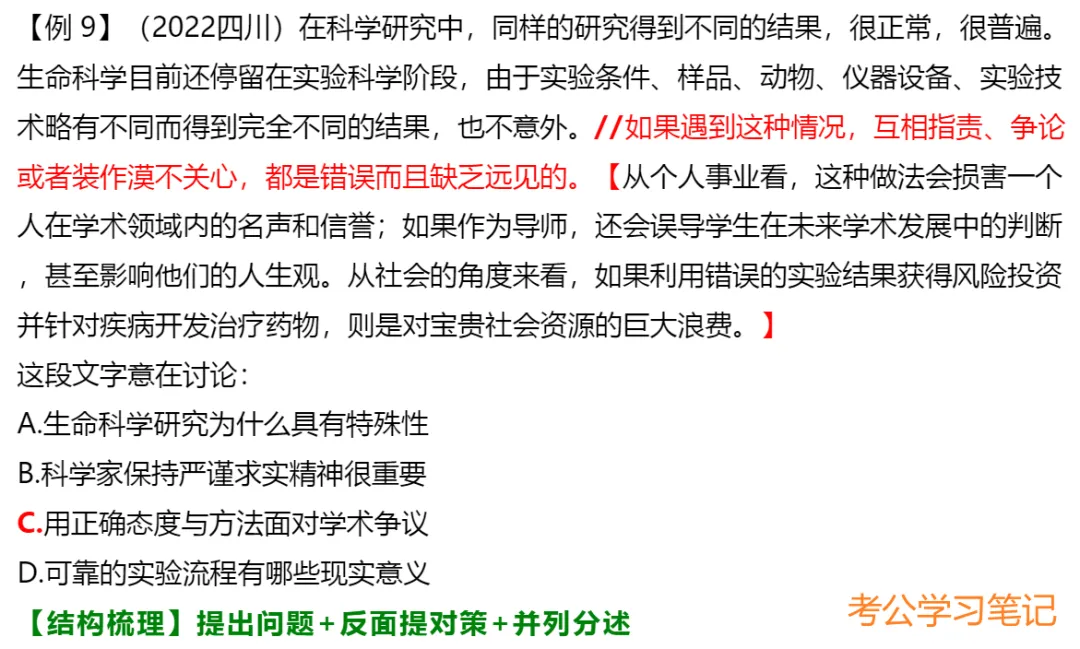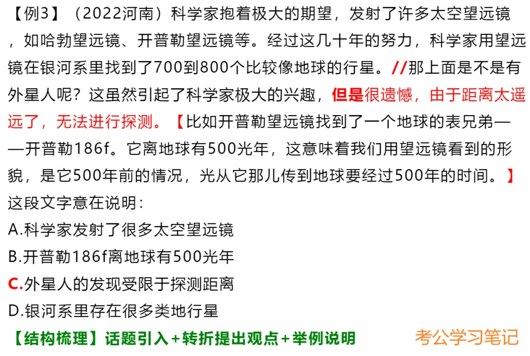 3.结论句出现在文段开头/中间,之后仍有其他语句:①当之后的语句是进一步解释说明,此时中心句仍为结论句;②当之后又出现并列、因果、转折或对策等,需结合多种关联词共同分析。