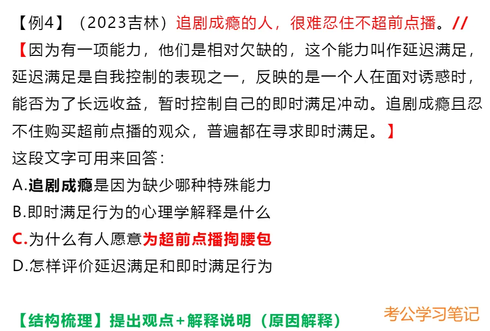 文段结构:因果类文段(结论+原因、原因+结论、引入+结论+原因)。
